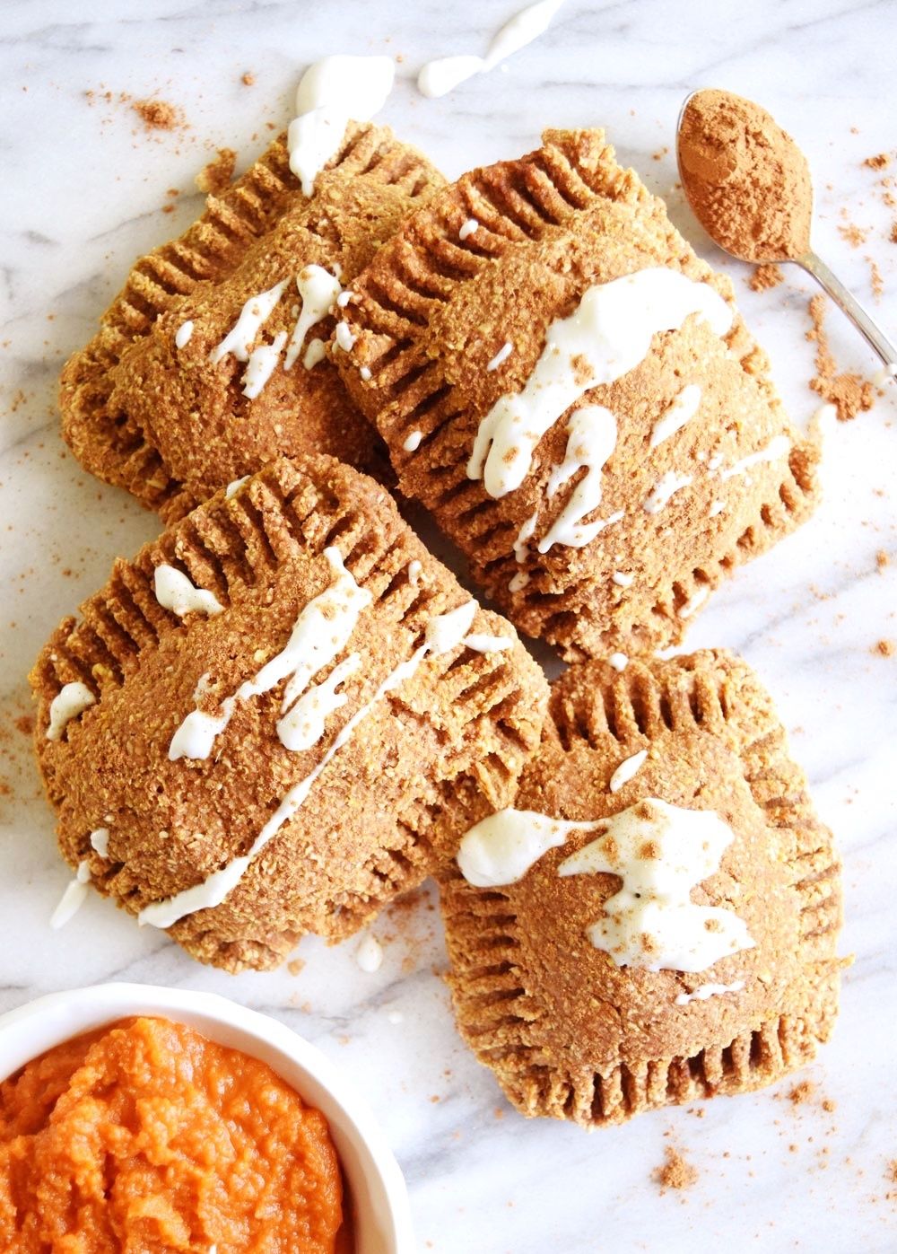These vegan pumpkin pie poptarts are such a fun breakfast treat for fall! Made with just 5 ingredients, gluten free, and fruit sweetened.
