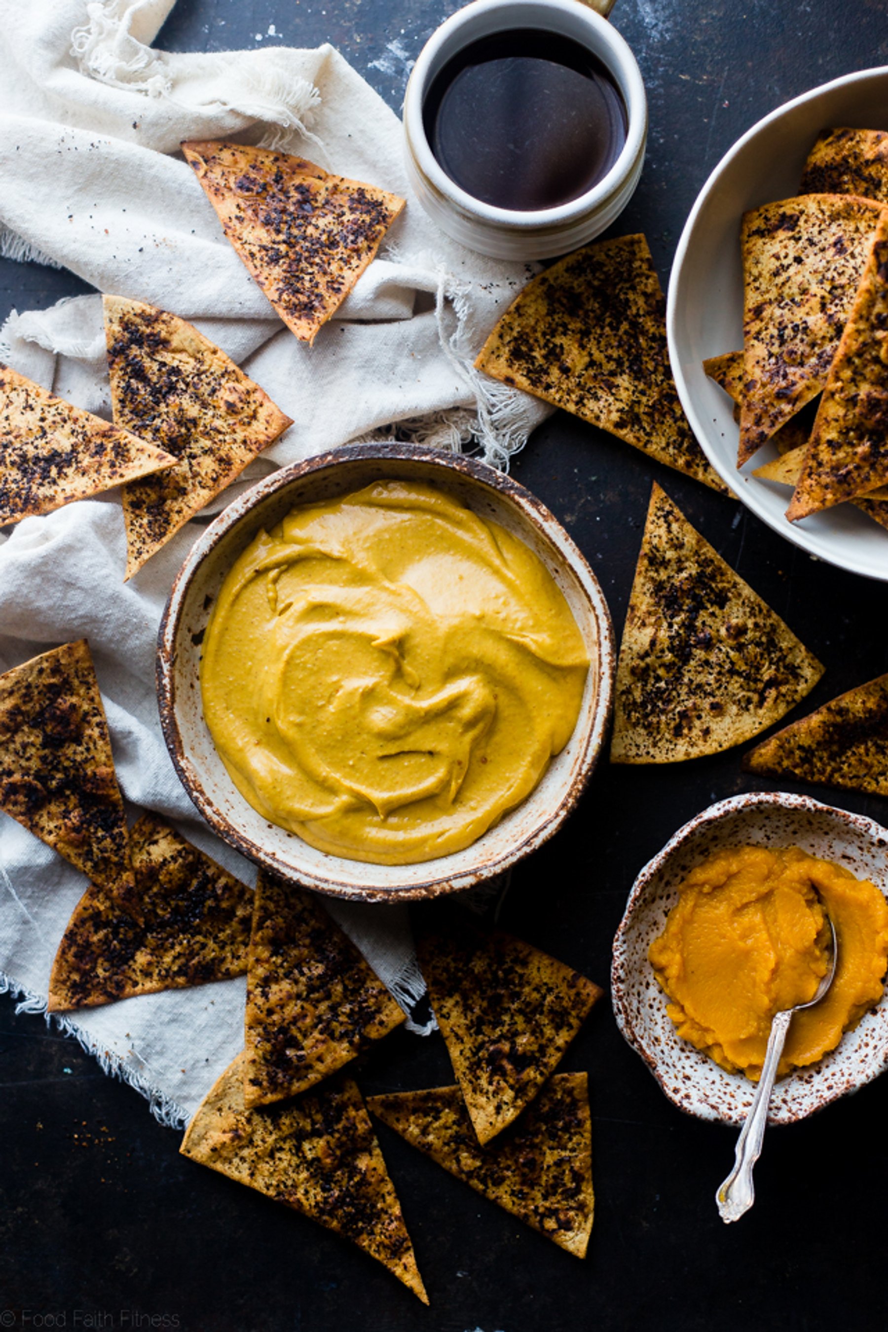 This easy healthy pumpkin pie dip is served with baked coffee chips so it tastes like a pumpkin spice latte! It’s a vegan-friendly, healthy holiday dessert that is so simple to make!