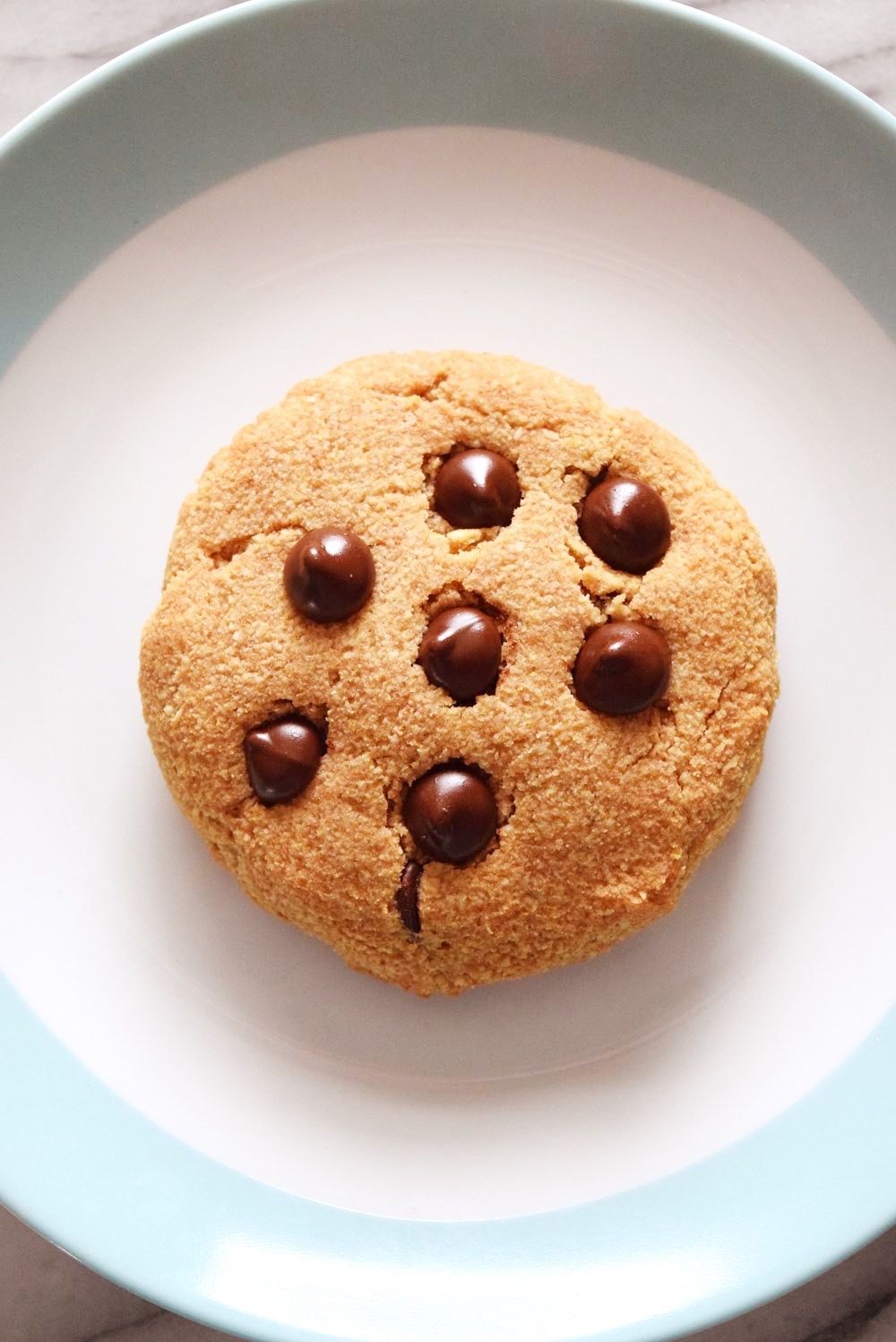 This vegan single serving chocolate chip cookie is perfect for when you get a cookie craving, but don't want a whole batch of sweets. Healthy, gluten free, and fruit sweetened!
