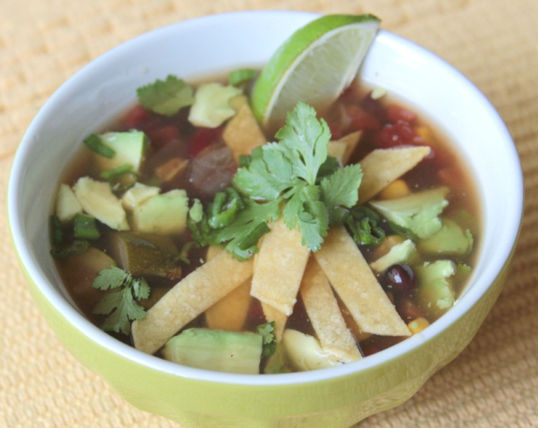 This super healthy vegan version of tortilla soup that takes just 10 minutes to prep and finishes in the slow cooker. Fabulous easy and affordable Meatless Monday recipe!