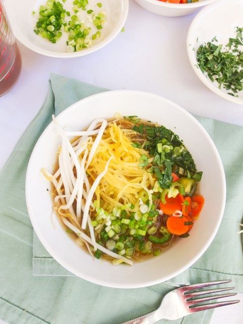 Prepare the pho broth. Put the onions, shallots, garlic, and ginger slices in the oven on broil until very browned. Add the charred aromatics to a large pot, and add 8 cups of water. Turn the heat to...
