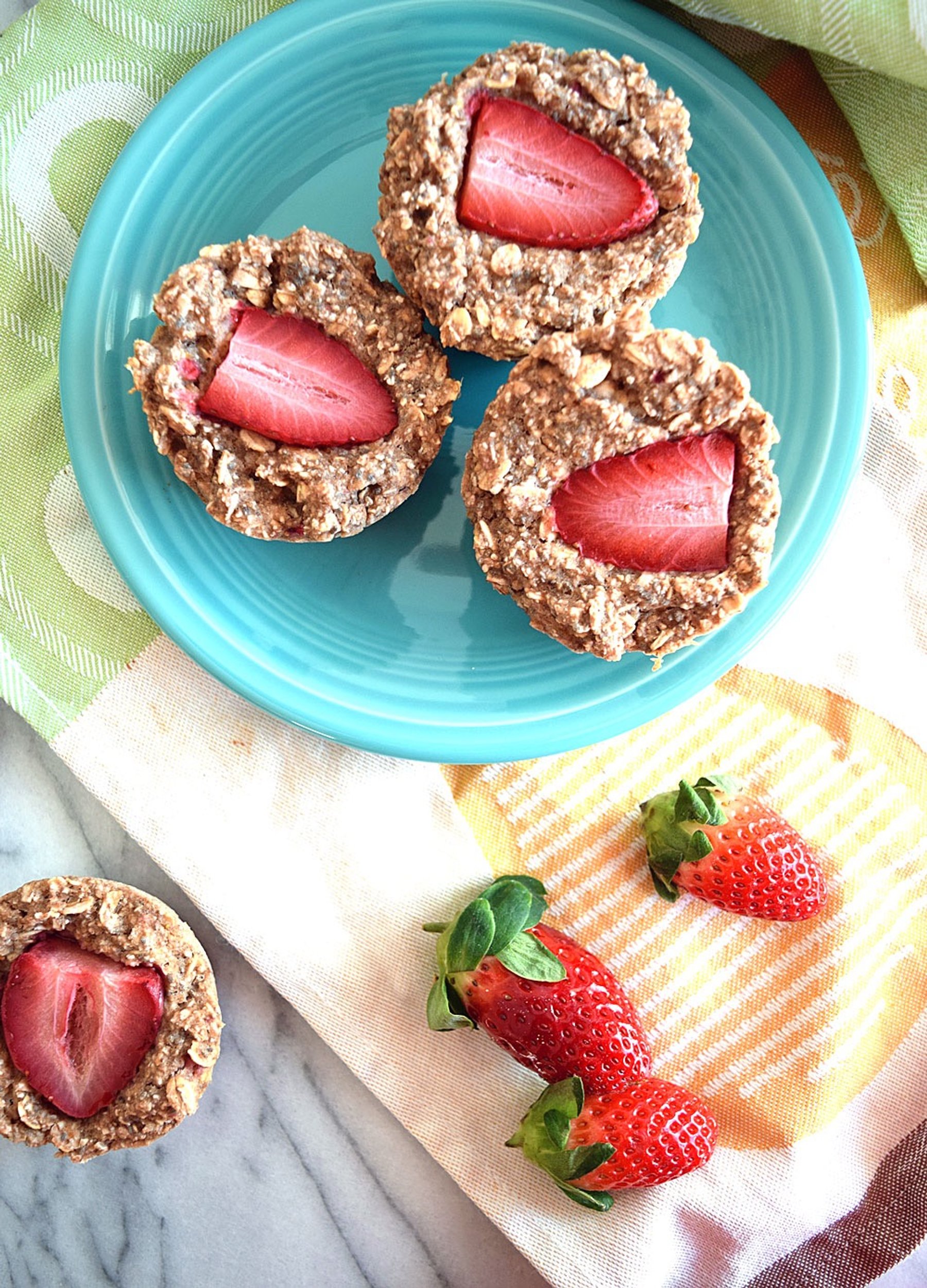 Soft oat muffins filled with sweet strawberry flavor. These vegan strawberry chia seed muffins are gluten free and sweetened only with fruit!