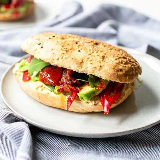 Easy to make Turkish bread sandwich with fluffy homemade pide bread and delicious ingredients like hummus and avocado. A great lunch or brunch recipe.