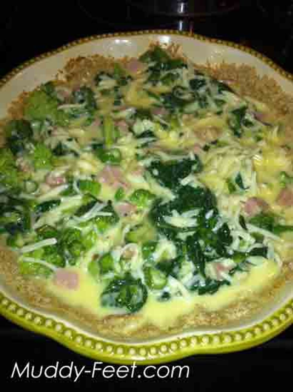 Quiche is such a fantastic way to get vegetables into your kids! My five year old, won't eat spinach if it's just sitting on his plate but bake it in eggs with cheese, well we then will have a winner! The fun thing about quiche is that you can make it with whatever you have on hand. I picked up some fresh vegetables at our farmer's stand. Frozen can be used as well, just be sure to have everything cooked so the frozen won't defrost and add unnecessary water into your quiche.