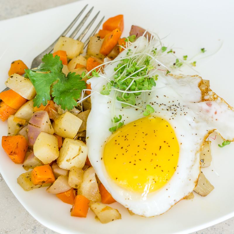 Quick and easy Vegetable Hash with a Fried Egg - perfect side or brunch dish.