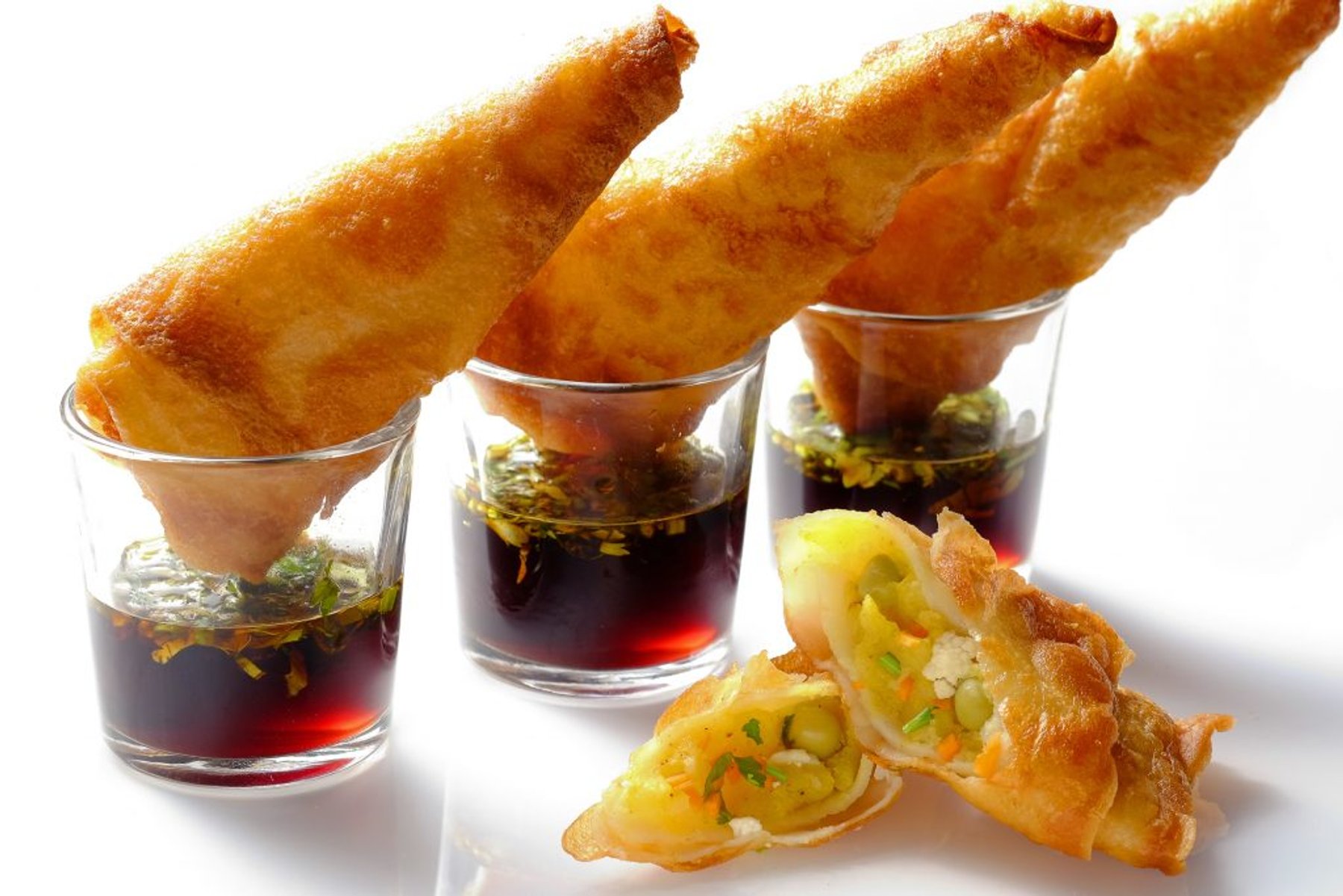 Vegetarian Curry Samosas with Tamarind Dip