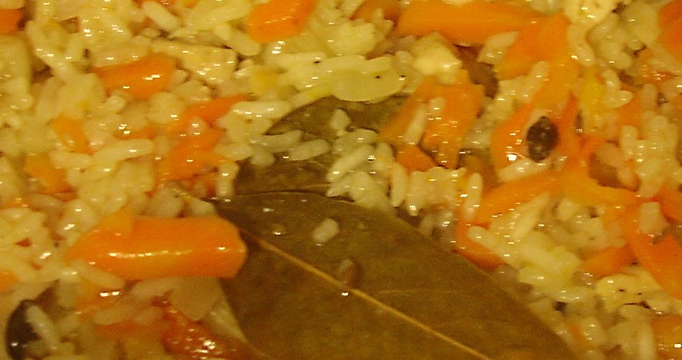 600 grams of rice, 600 grams of carrots, 300 g of onions, 400 grams of water, 1 glass of sunflower-olive oil (for frying), 1 tablespoon sesame seeds, 1/2 teaspoon barberry, 1/4 teaspoon cumin, black pepper and salt to taste, 2-3 Bay leaves.