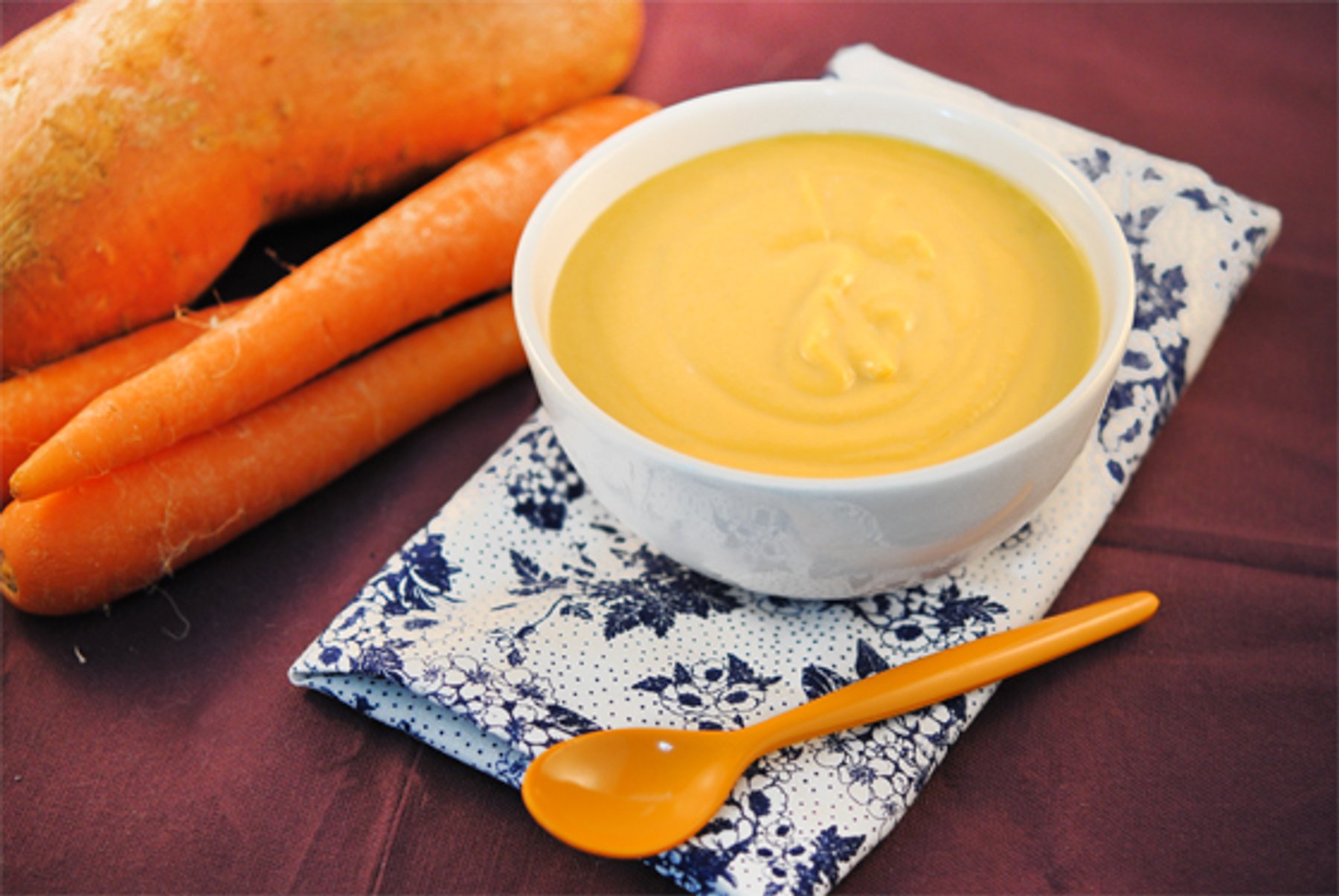 Velvety carrots and sweet potatoes with coconut milk