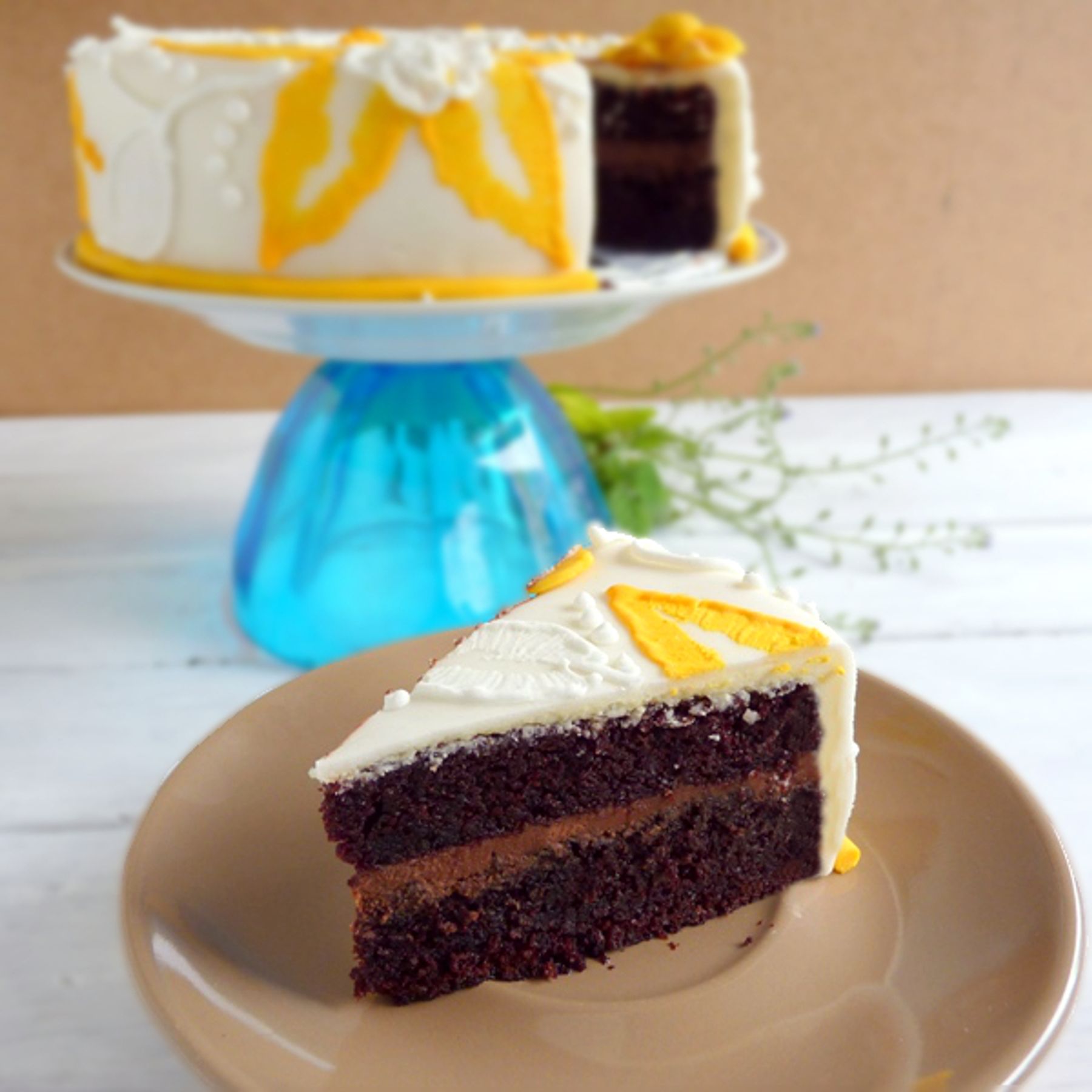 Very rich and moist chocolate cake with chocolate ganache filling covered in marshmallow fondant. The combination of chocolate ganache and marshmallow fondant makes it not too sweet like other fondant cakes you've tried.