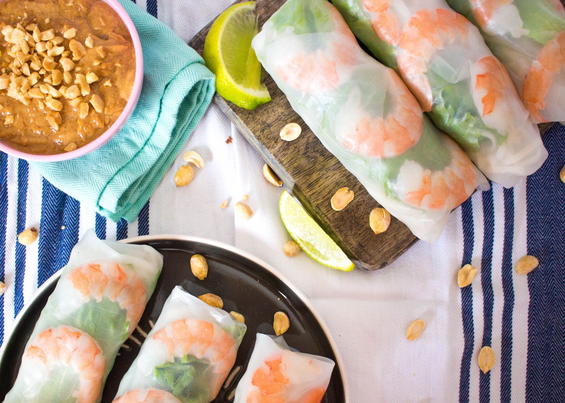 These fresh and healthy Vietnamese Rice Paper Shrimp Rolls are so easy to make! They\\\'re accompanied by my go-to creamy peanut sauce.