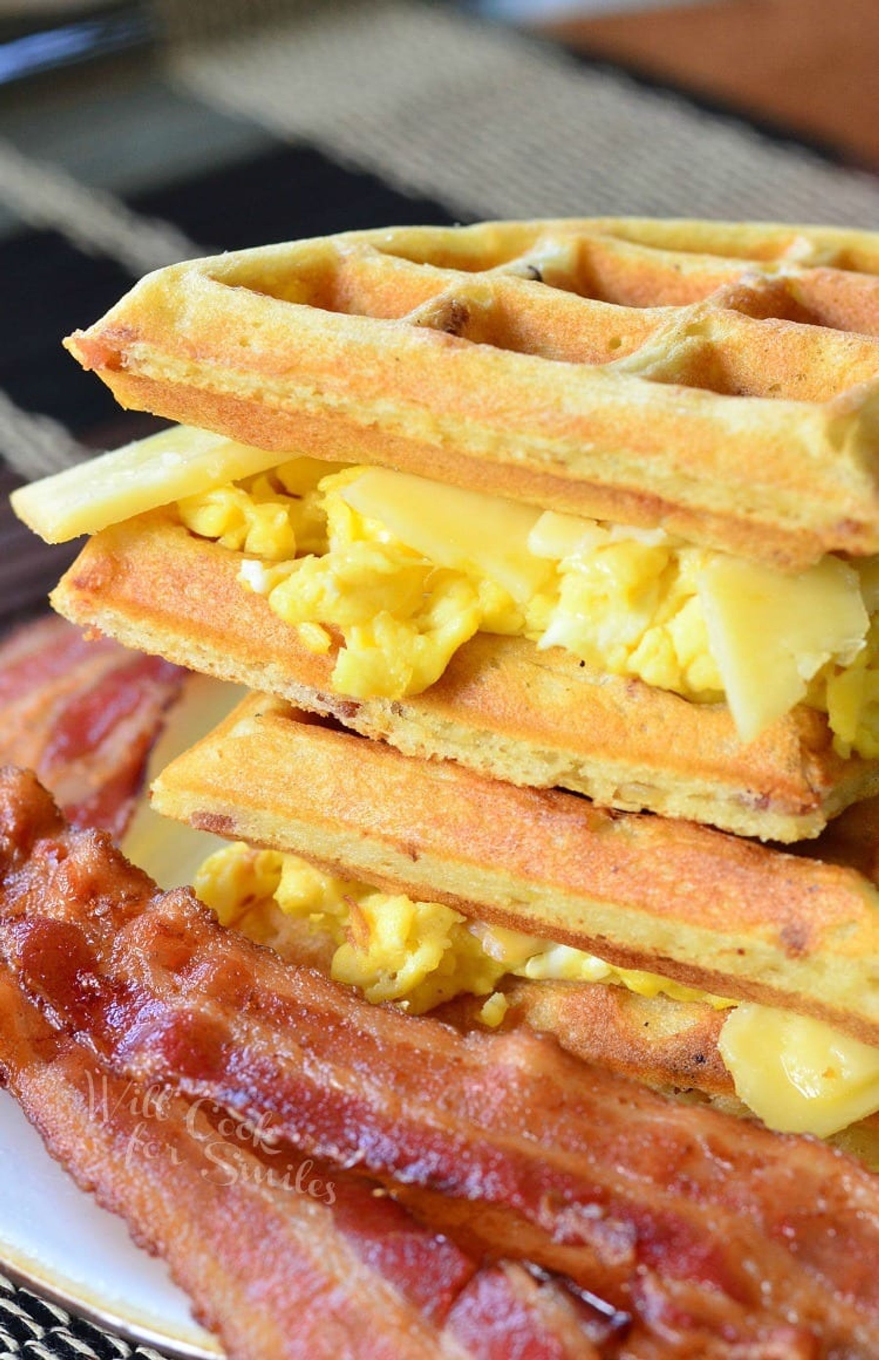 Waffle Breakfast Sandwich with Savory Bacon Waffles - Will Cook For Smiles