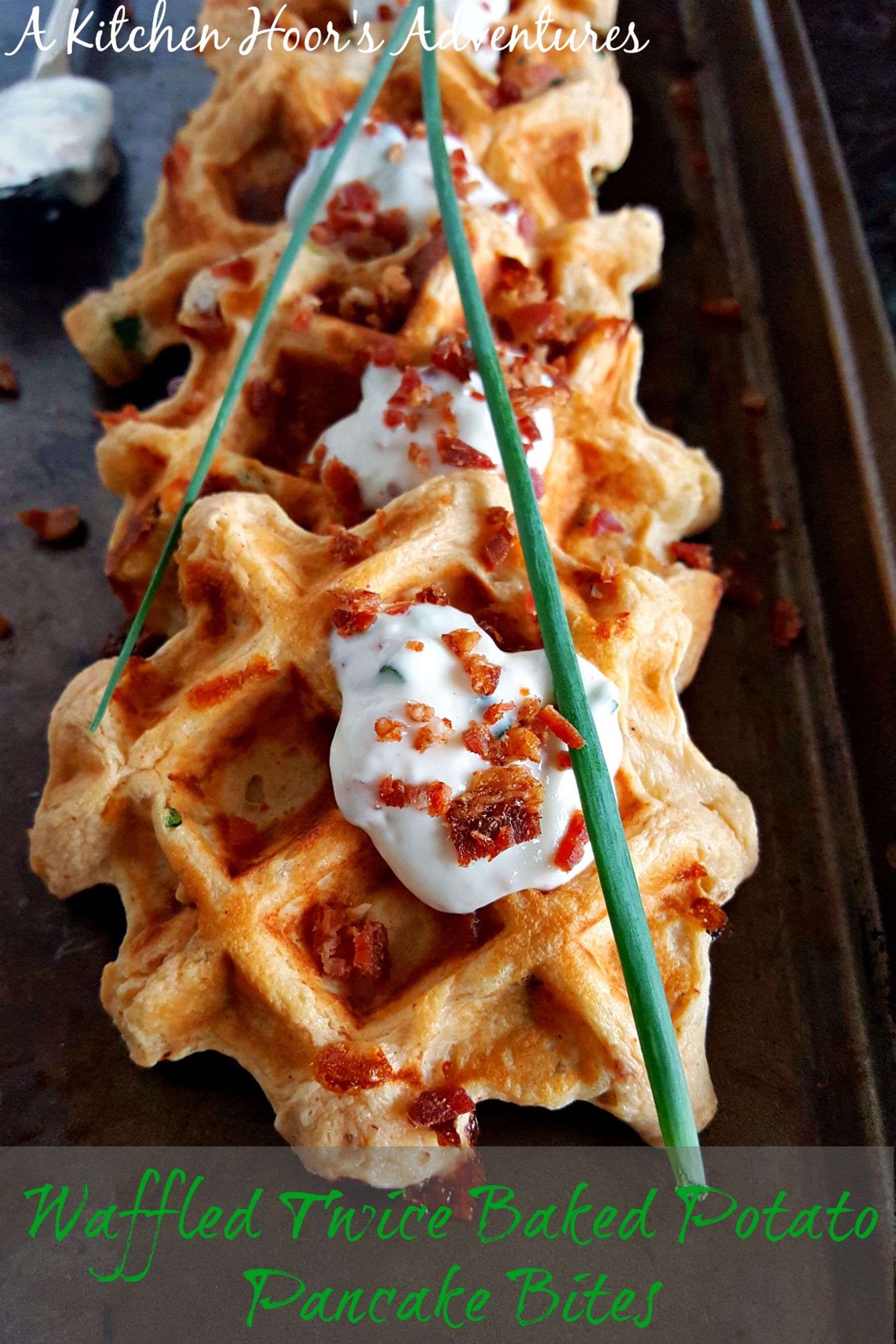 #SundaySupper Waffled Twice Baked Potato Pancake Bites sound confusing but taste amazing. Deliciously creamy Idaho potatoes are whipped and combined with twice baked filling before turning them into pancake batter that is cooked in a waffle iron.