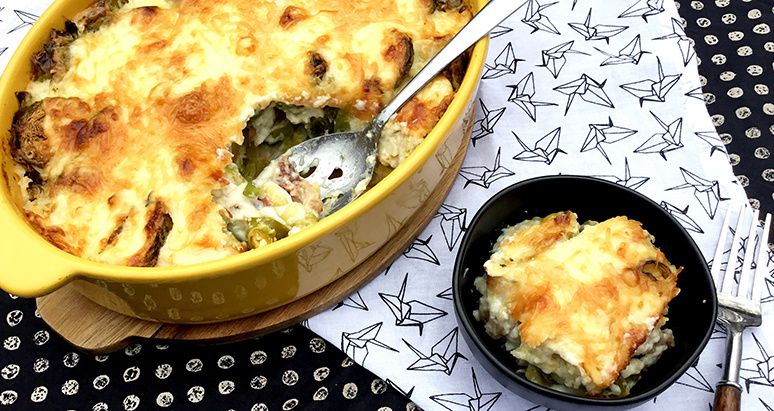 Wagyu Beef Bacon and Brussels Sprouts Au Gratin