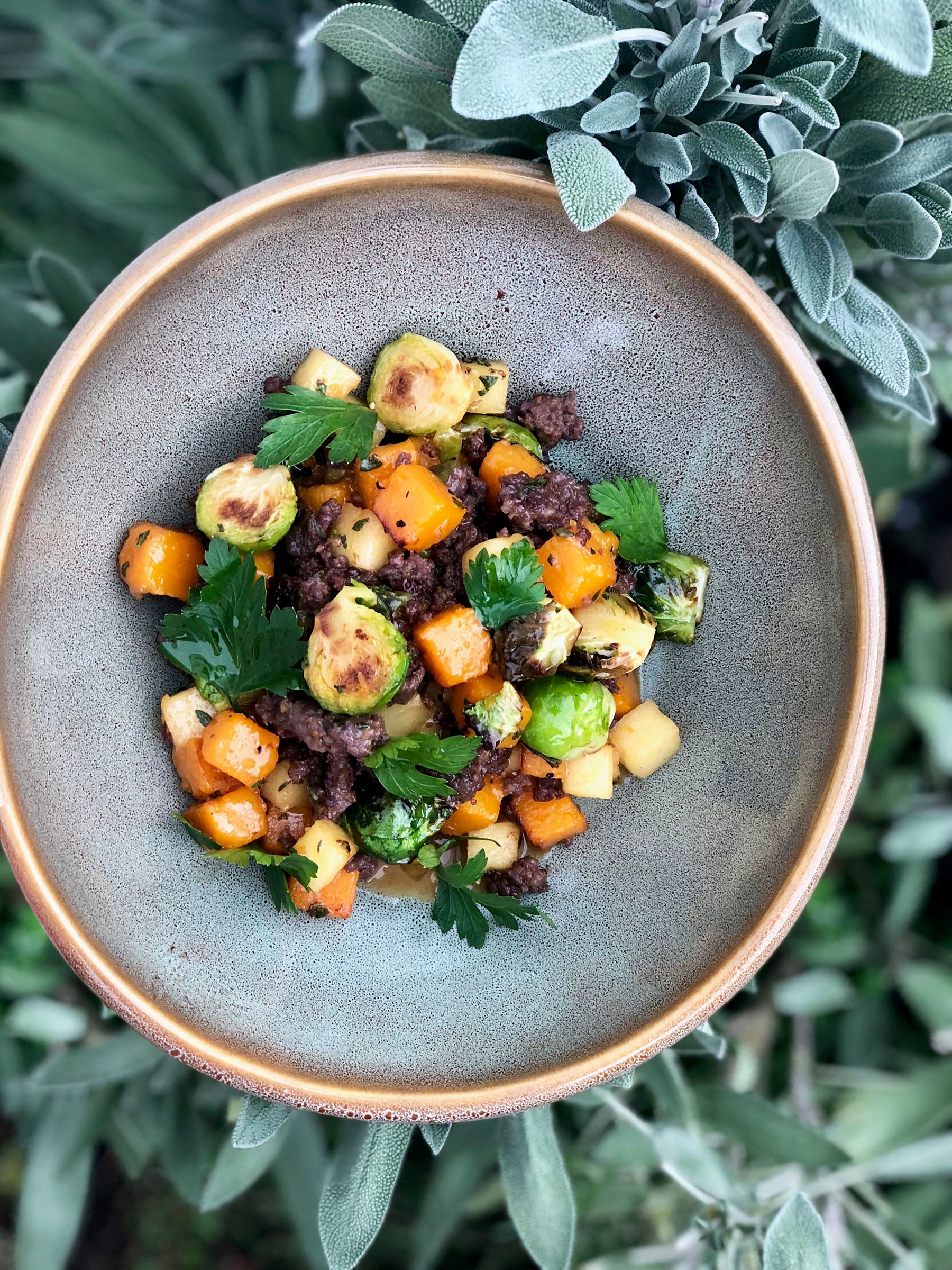 Wagyu Bratwurst and Butternut Squash Hash