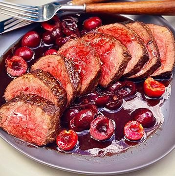Wagyu Filet Mignon with Fresh Cherry-Shallot Pan Sauce