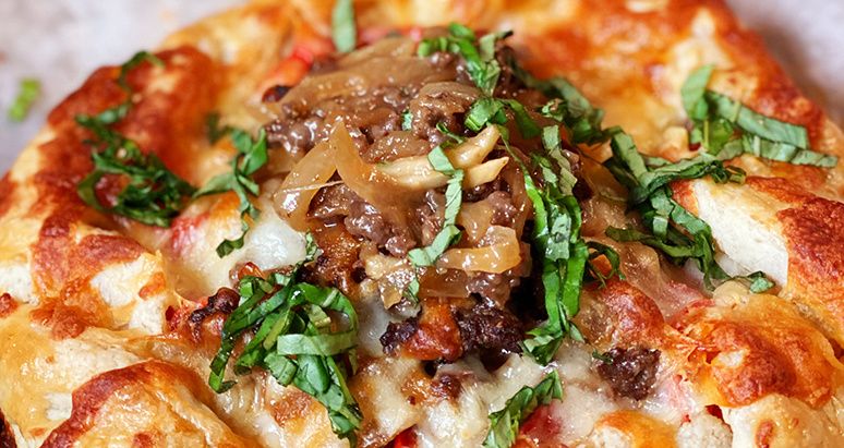 This savory pie has Fullblood Wagyu hot Italian sausage, onions, tomatoes, Gruyere cheese, and fresh basil. The homemade galette dough, combined with all of the tasty toppings, makes each bite a treat! Next time you're hosting friends and family, try this delicious recipe!