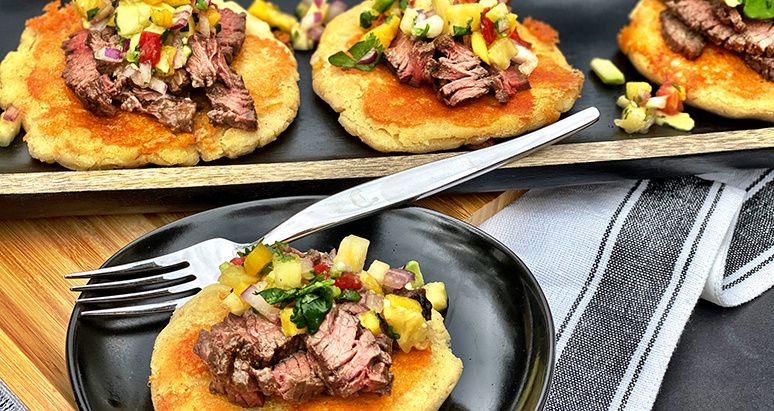 Wagyu Top Round Steak with Salsa & Cheese Pupusas