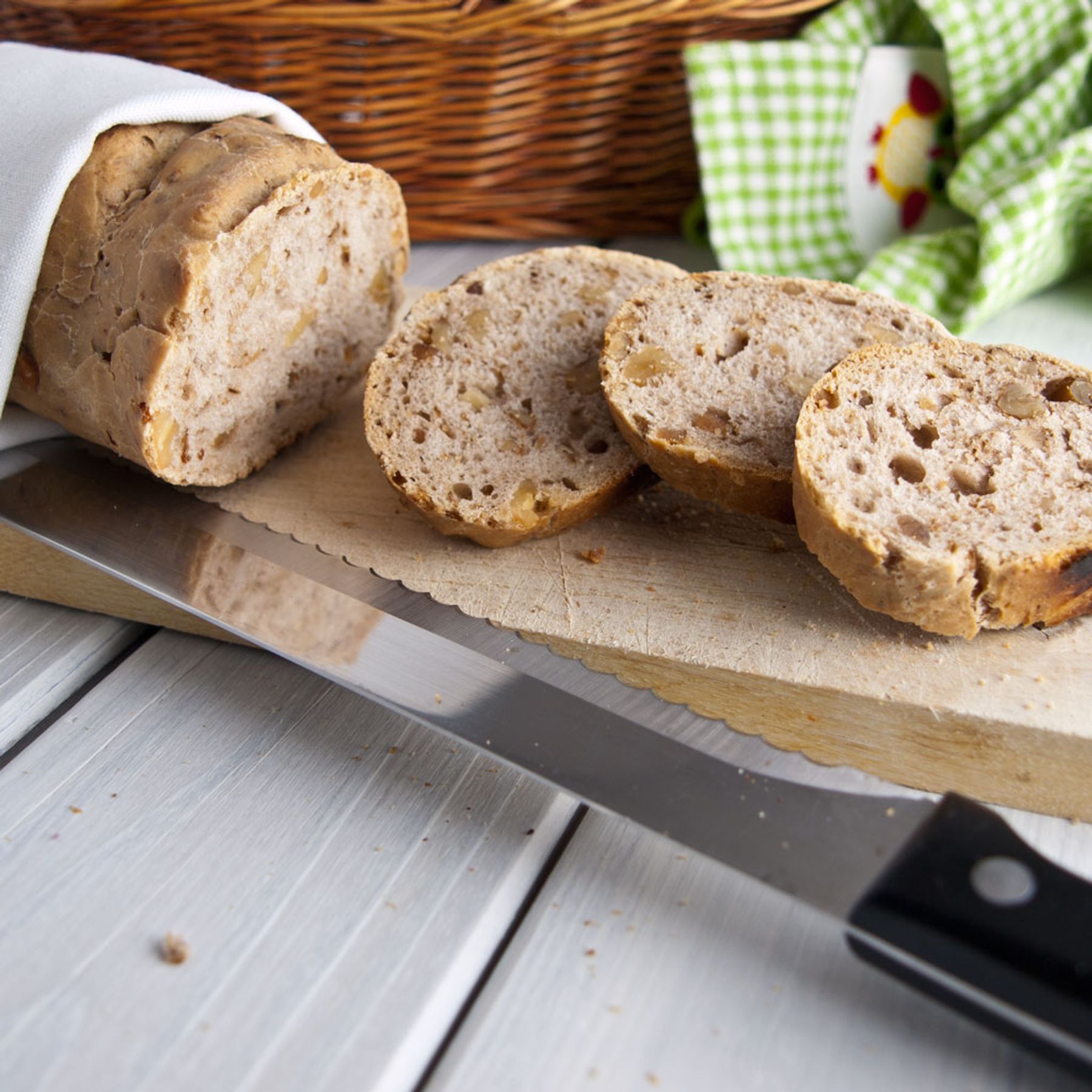 Easy to make, hearty and nutty walnut baguette. Perfect sidedish for grilled meat, antipasti, spicy cheese, strong red wine, soups and stews.
