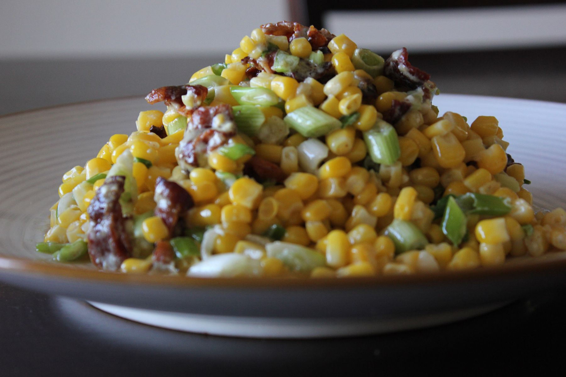 Warm Salad of Bacon, Corn, Blue Cheese and Green Onion