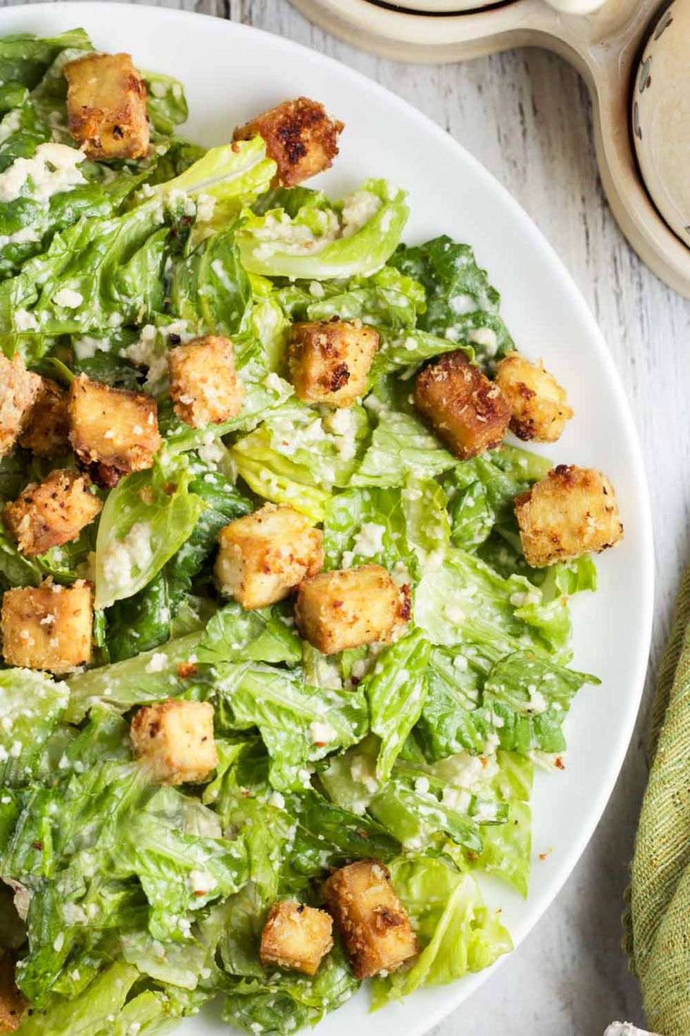 This Wasabi Caesar Salad is dairy and anchovy free, and so tasty. The sesame-tofu croutons are a nice crunchy addition!