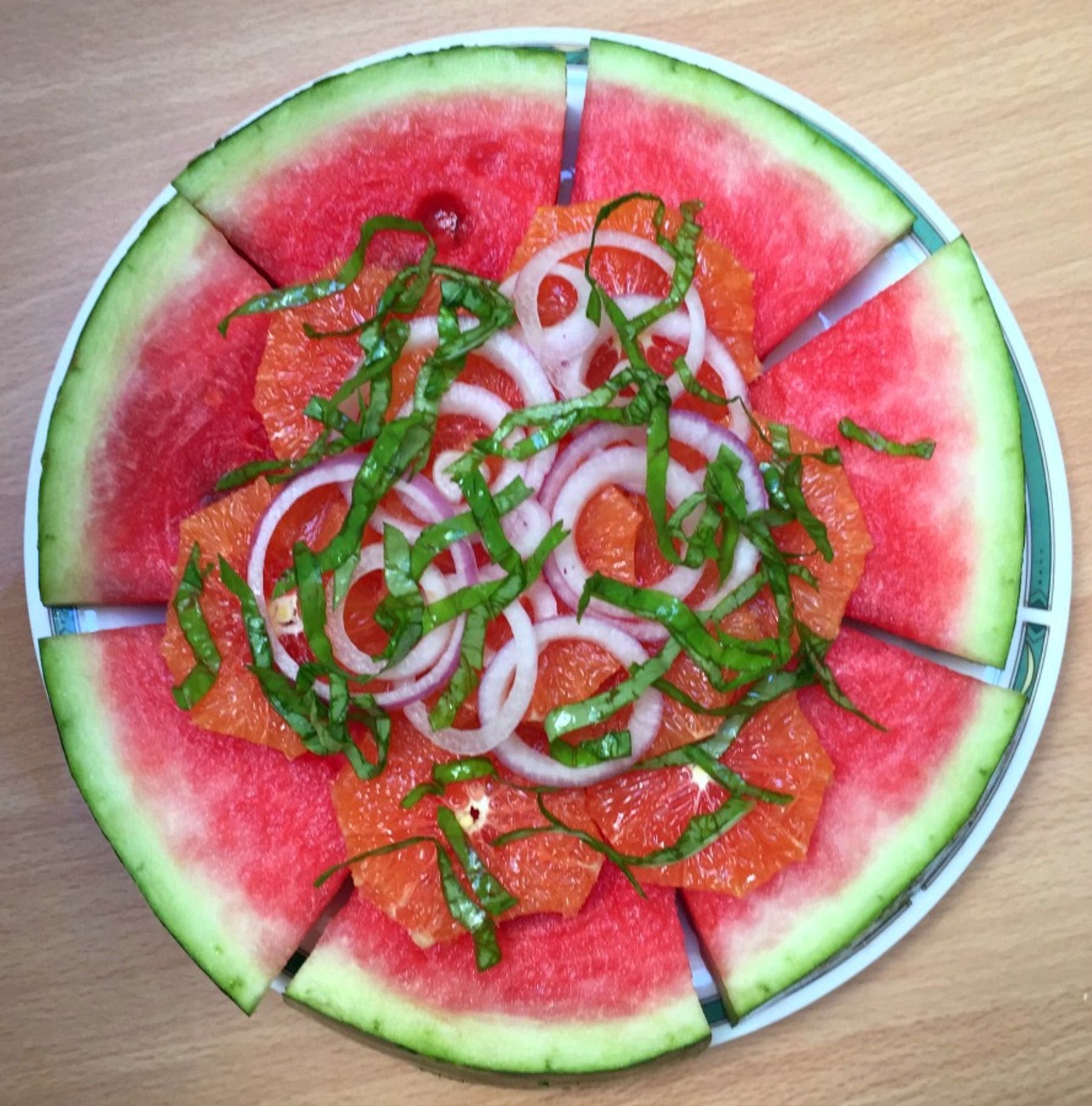 Watermelon Orange and Onion Salad with Balsamic Vinegar