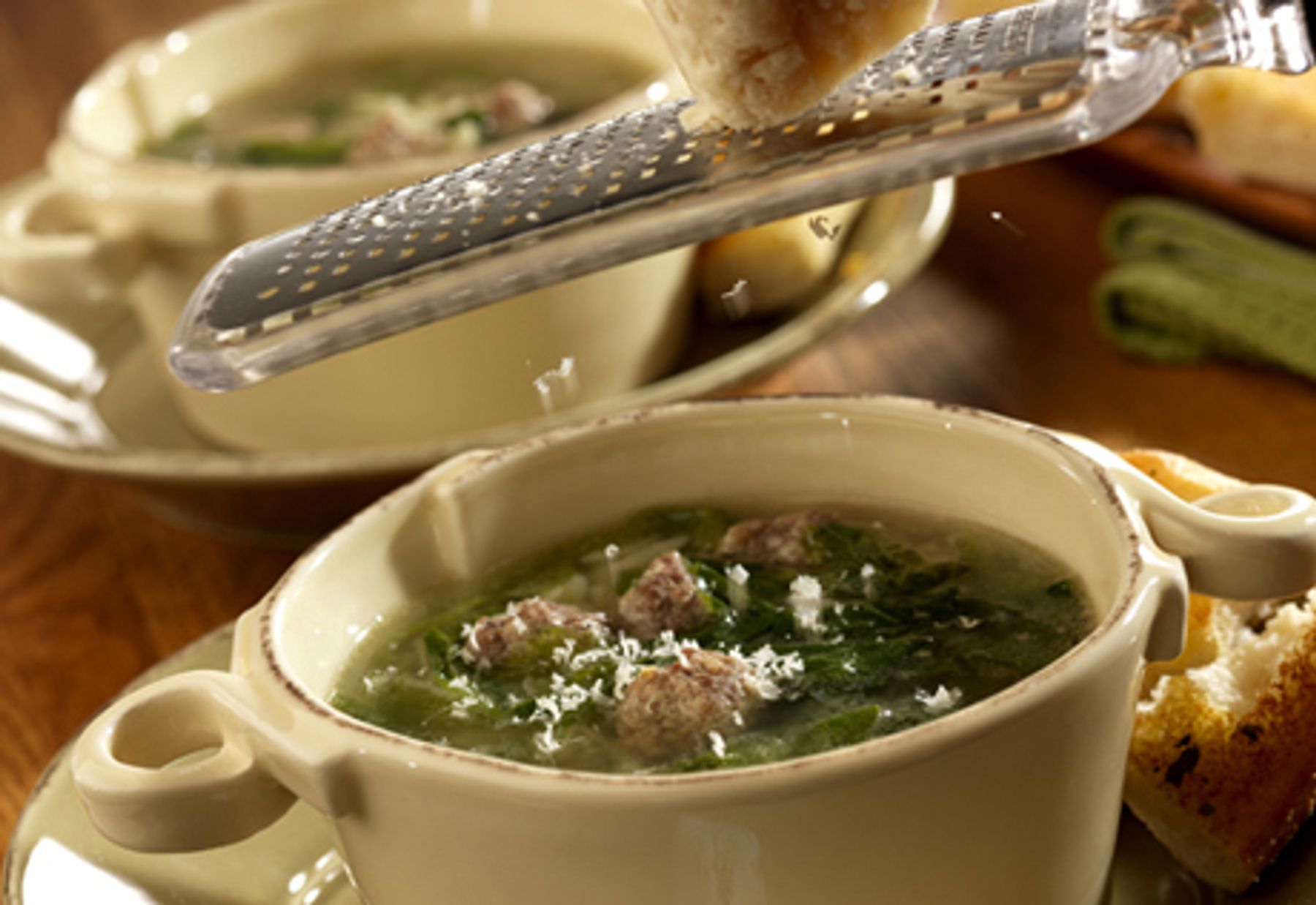 Stir the orzo in the saucepot and cook for 5 minutes. Stir the escarole in the saucepot. Return the meatballs to the saucepot and cook until they're heated through. Sprinkle with the cheese.