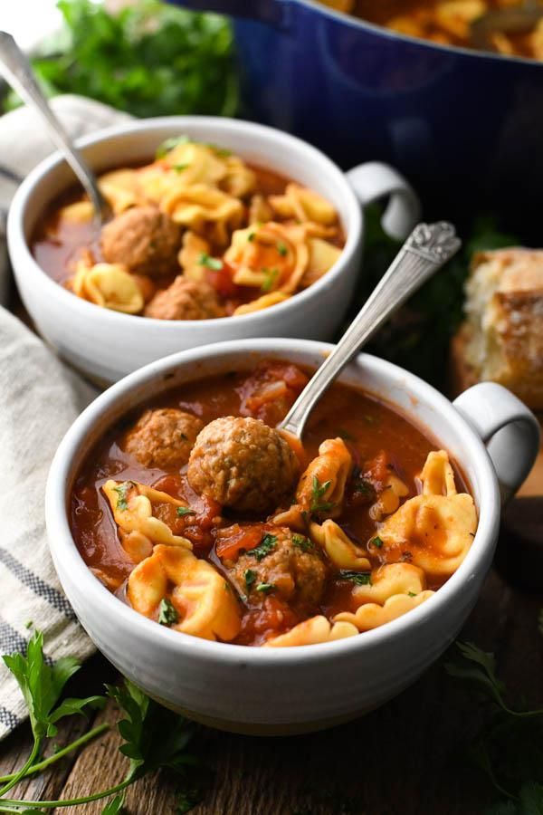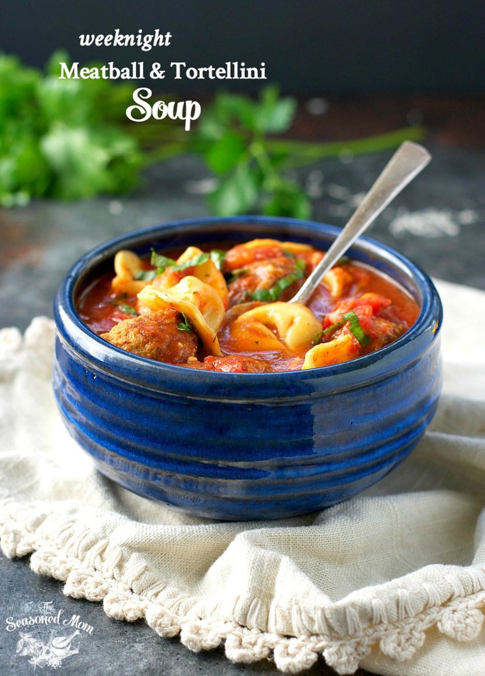 A perfect weeknight dinner! This Italian Meatball Soup recipe is full of tender, plump tortellini, mini meatballs and flavorful Parmesan cheese in a zesty tomato broth. Just add a side of garlic bread for a simple and cozy meal that comes together in about 30 minutes!