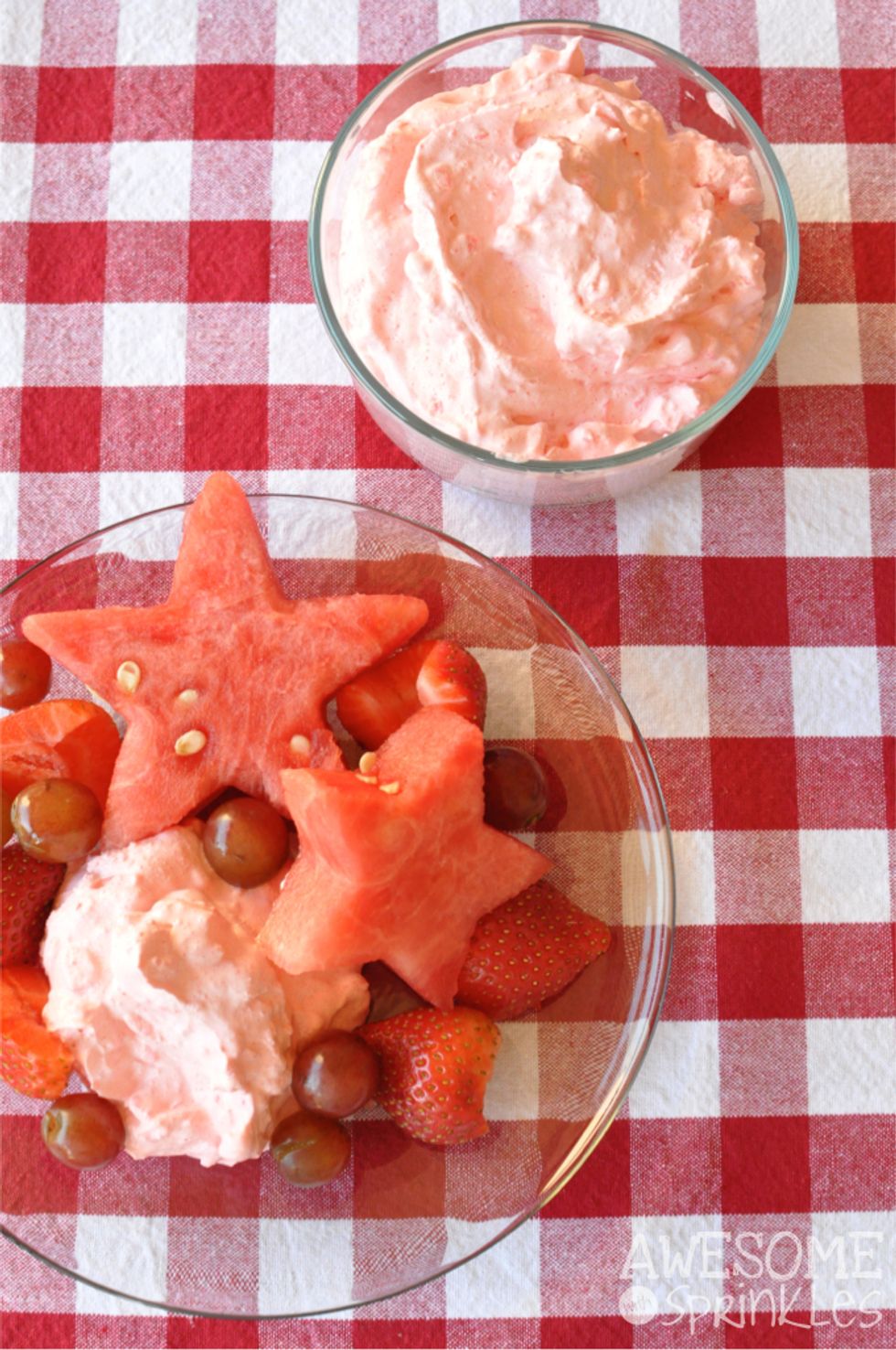 A weird, but delicious mid-western sweet treat made with Cool-Whip and Jello that goes great mixed with fresh fruit or as a fruit dip.