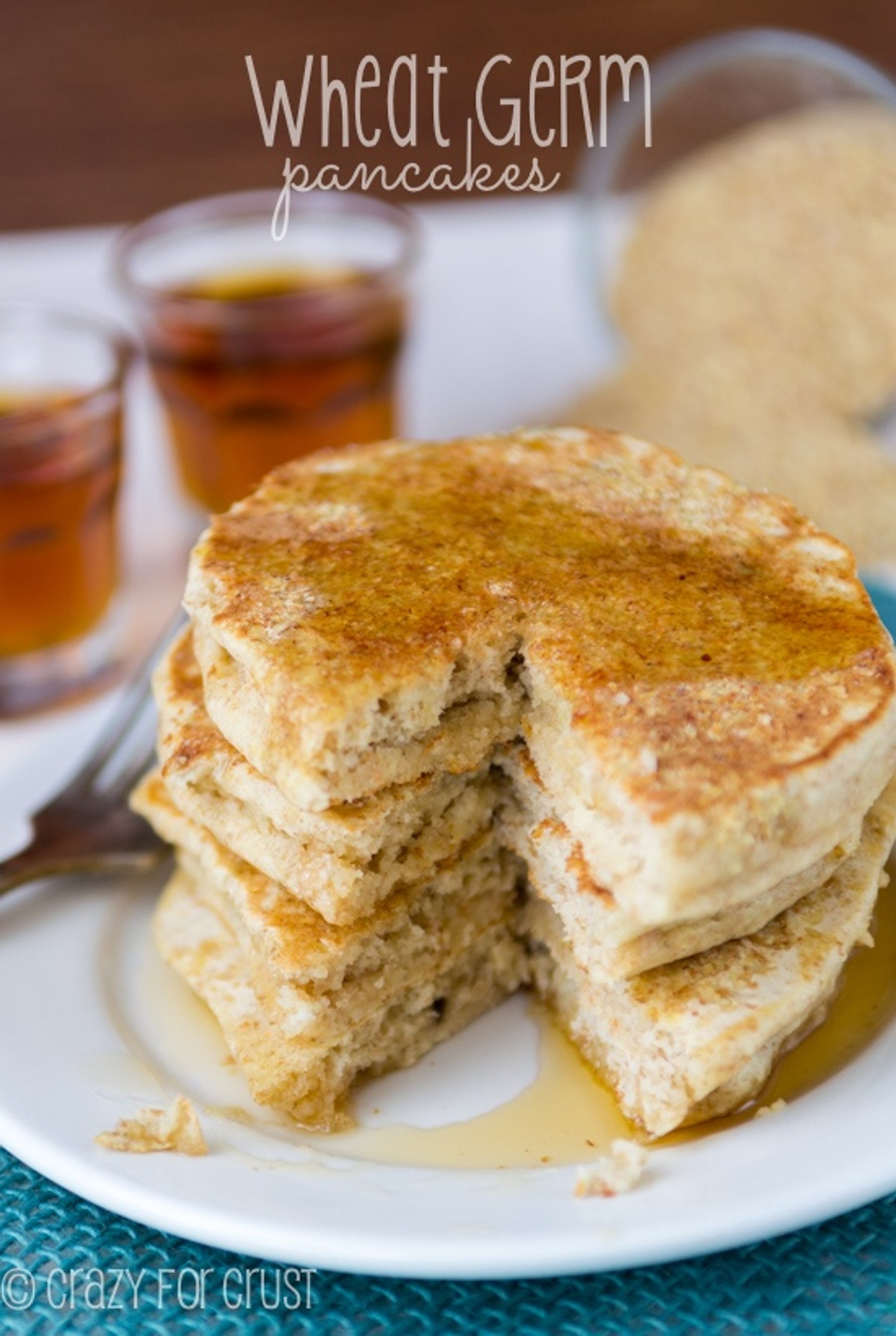 A fluffy, sweet, and healthy pancake with a crunchy wheat germ topping! Can be made dairy-free!