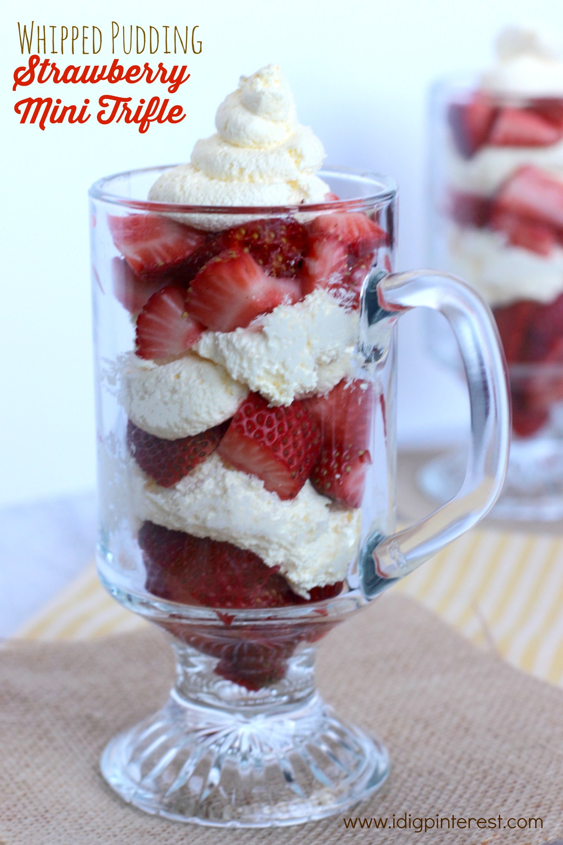 With an electric mixer or by hand with a wire whisk, combine whipped topping and pudding. Layer whipped pudding and strawberries, alternating, in small disposable cups or in pretty, mini glass cups. For a...