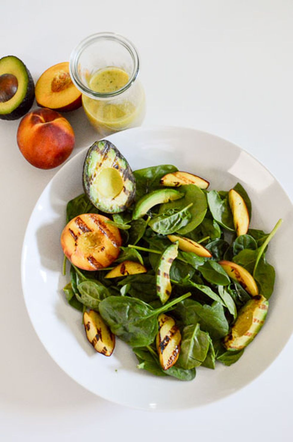 White Balsamic Vinaigrette over Grilled Peach and Avocado Salad