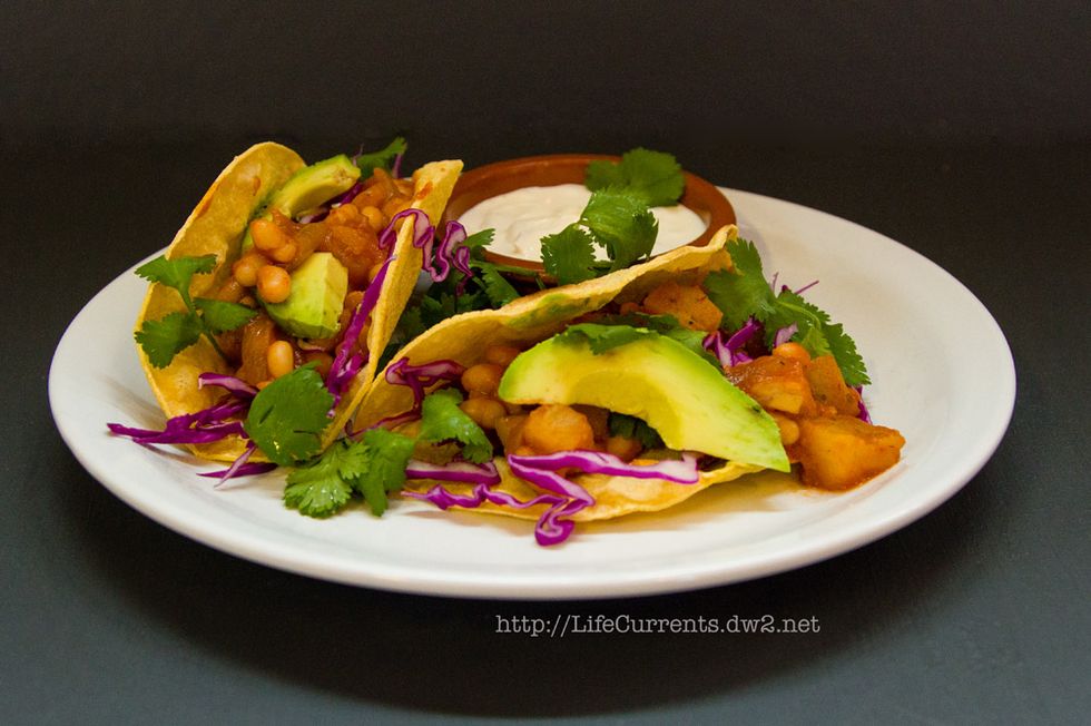 White Bean - Potato Tacos are super yummy, with a hint of smoky chipotle in the well-rounded, sweet & tangy sauce. Just all around a perfect taco filling!