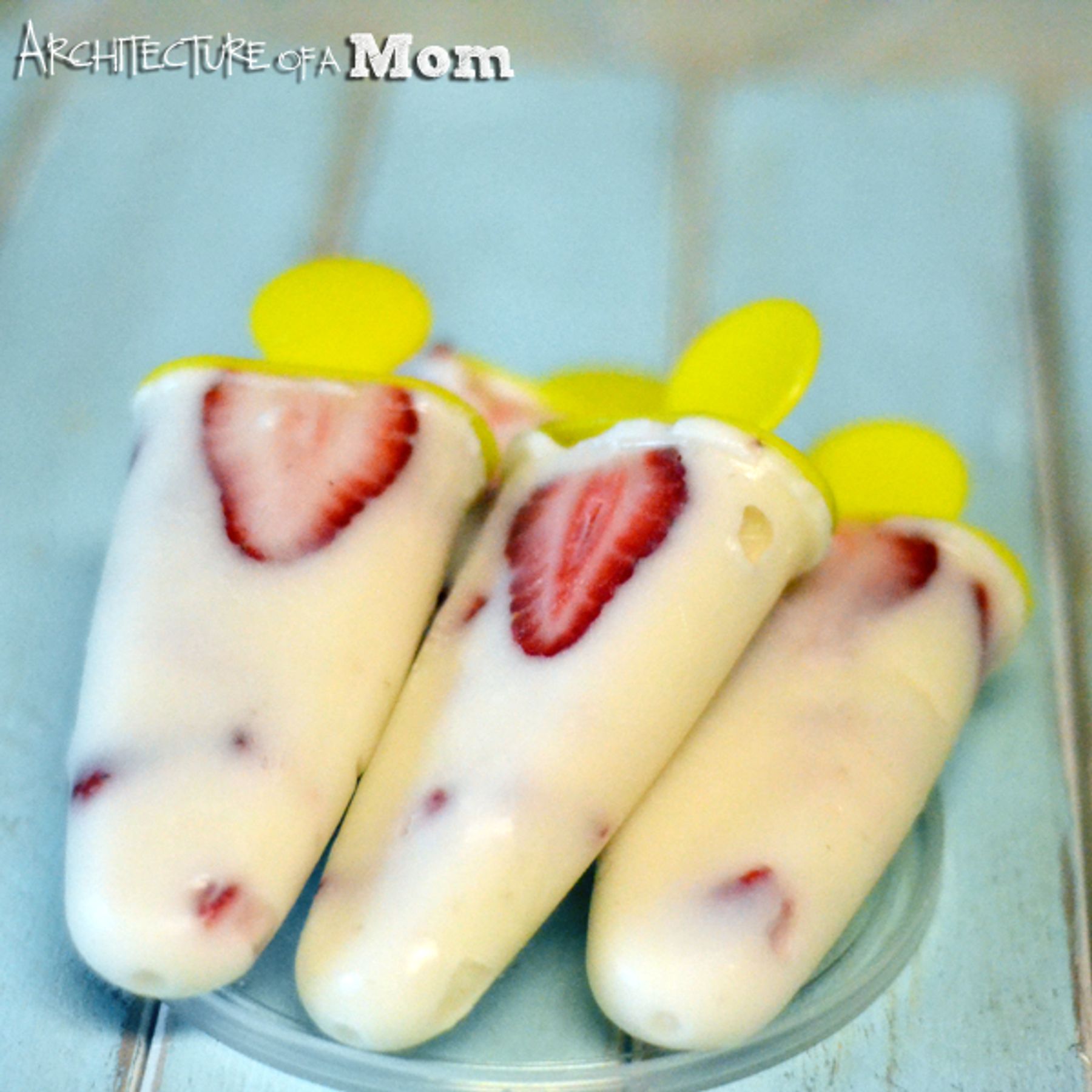 It's definitely summer here in the south, and although we've had a relatively cooler, rainier start to the summer than normal around here, we're still looking for something cold to eat for dessert in my house. So what does that mean? Popsicles! But since this mommy wants to make sure to sneak something sort of healthy into the mix (because I'm sneaky like that) I wanted to add some fruit to the typical pudding pop. Since the twins in particular are all about strawberries righ
