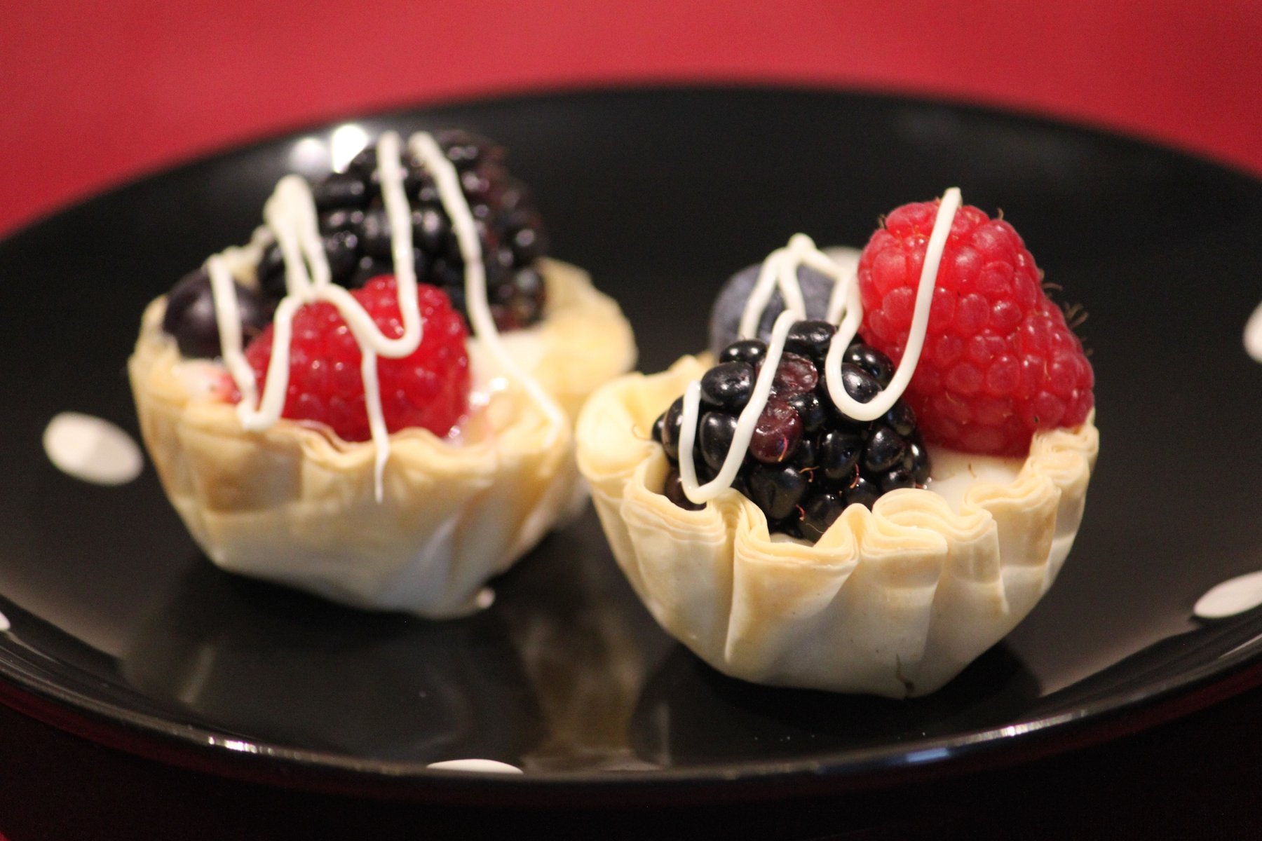 2 Place small spoonful or scoop of pudding in each fillo shell and top with your choice of berries.