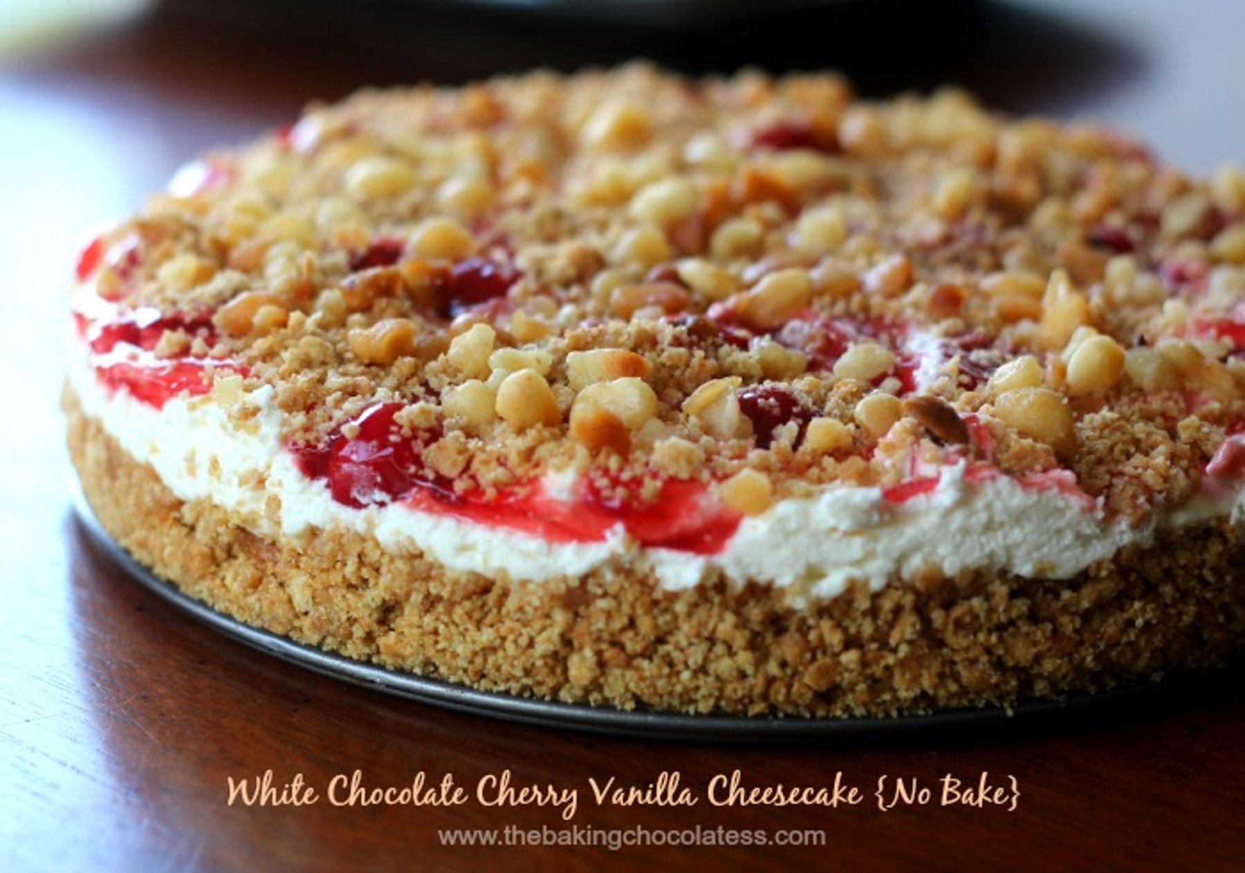 White Chocolate Cherry Vanilla Cheesecake {No Bake}