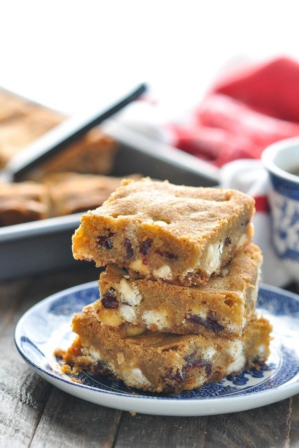 All of the flavors that you love in a Starbucks Cranberry Bliss Bar! These Blonde Brownies with White Chocolate and Cranberries are buttery, thick, chewy and even better than their coffee shop counterpart! Prepare a batch of bars to share with friends and family for a festive and easy holiday dessert.
