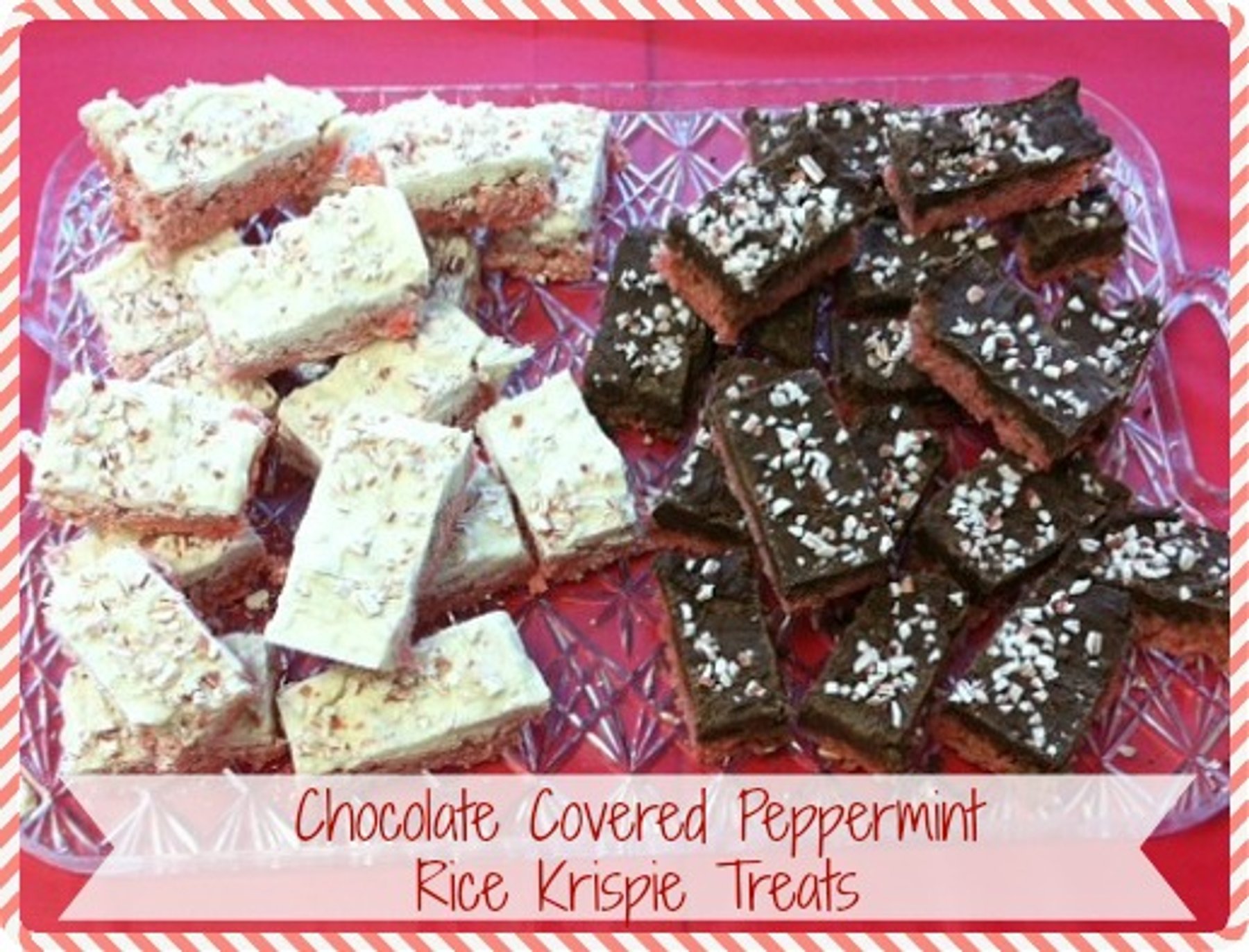 White Chocolate Covered Peppermint Rice Krispies Treats