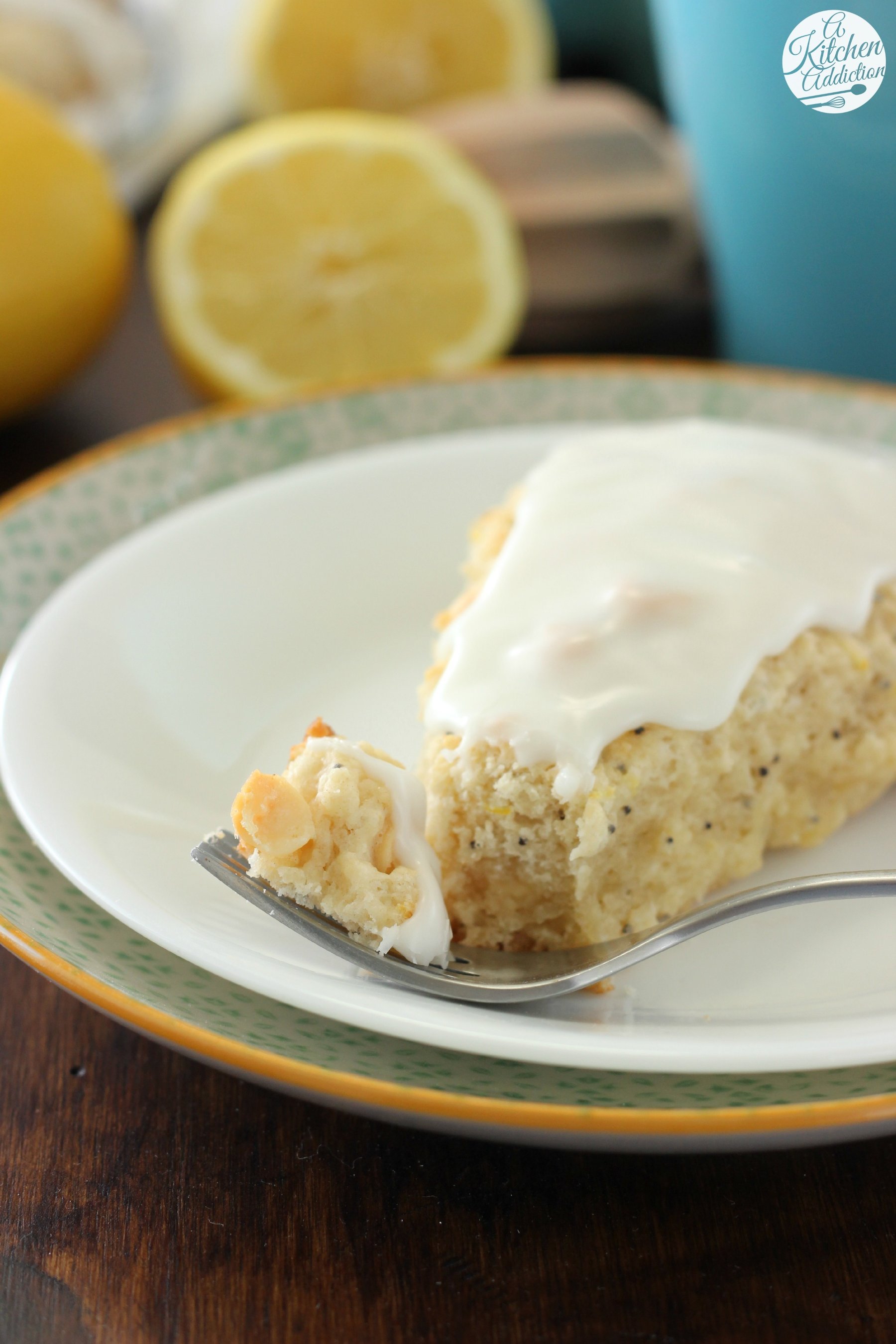 Bright and tender, these white chocolate lemon poppyseed scones are filled with tart lemon and sweet white chocolate!