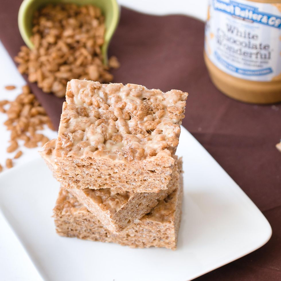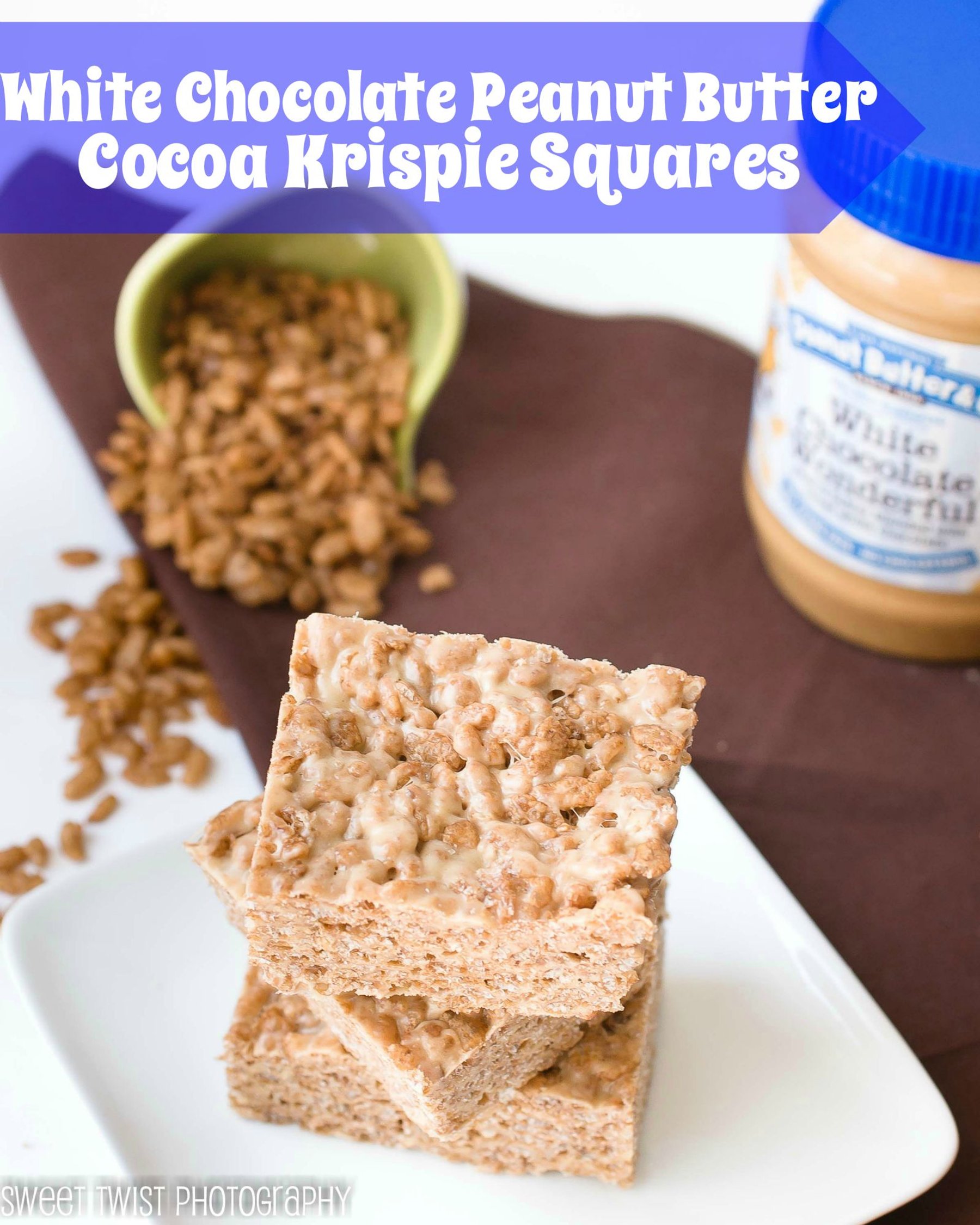 White Chocolate Peanut Butter Cocoa Krispie Squares