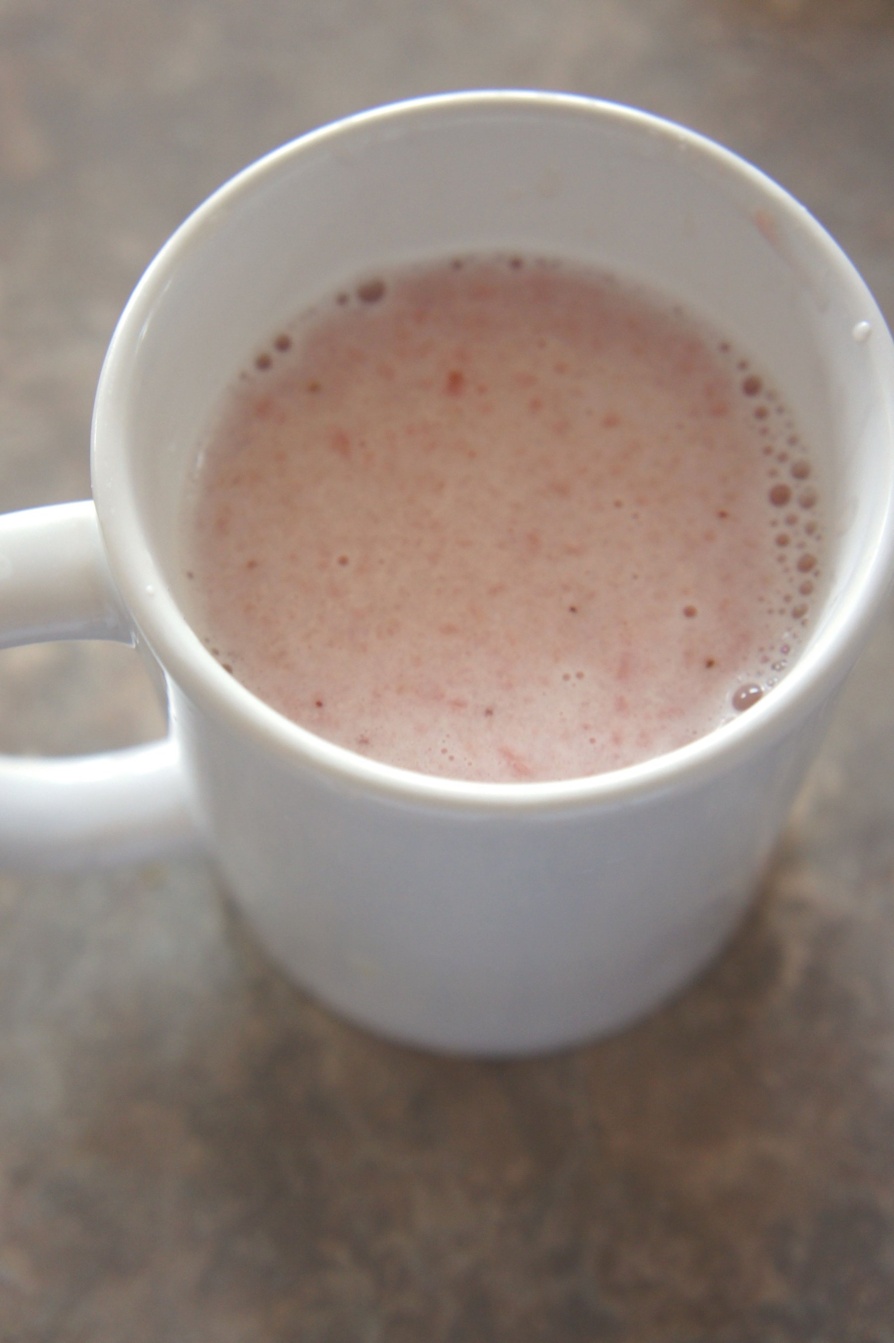 Strawberries combined with white chocolate to create a delicious hot chocolate.
