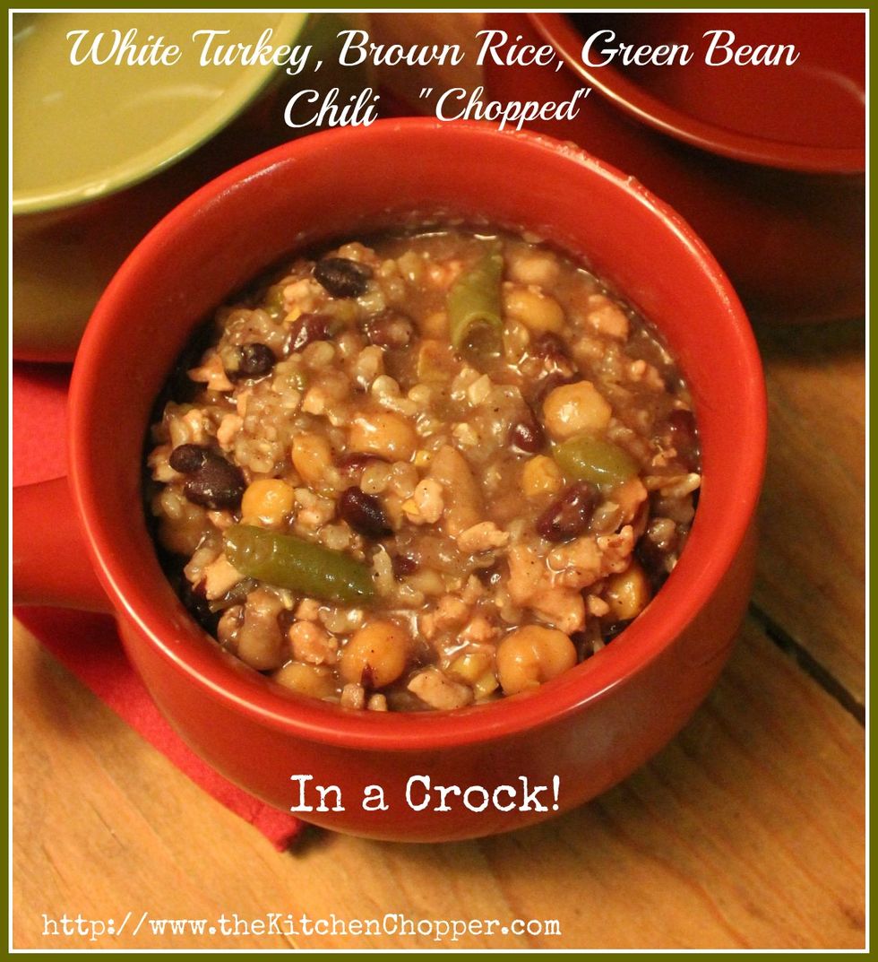 White Turkey, Brown Rice, Green Bean, Chili Chopped in a Crock