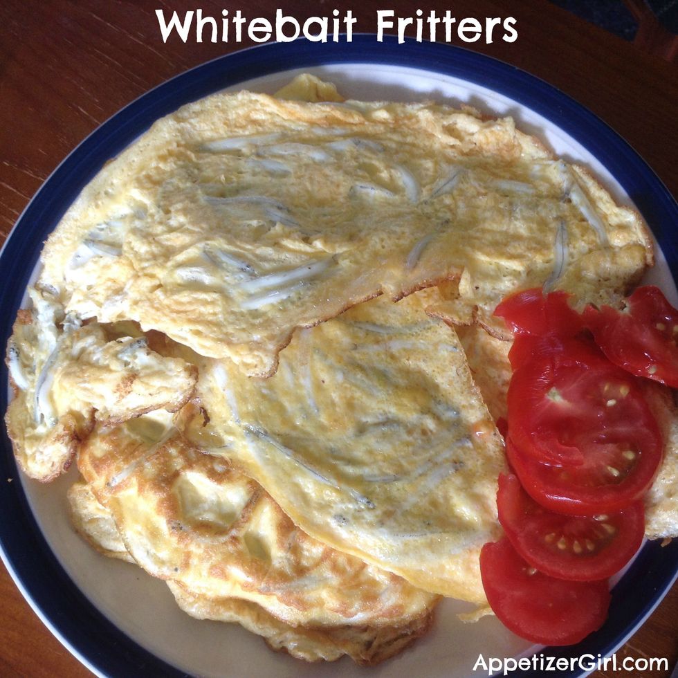 Place the 6 eggs into a large bowl and whisk. Add the whitebait and then whisk a little more. Place a fry pan on the stove and add a little oil or butter and let it melt. Ladle in some of the mixture and...