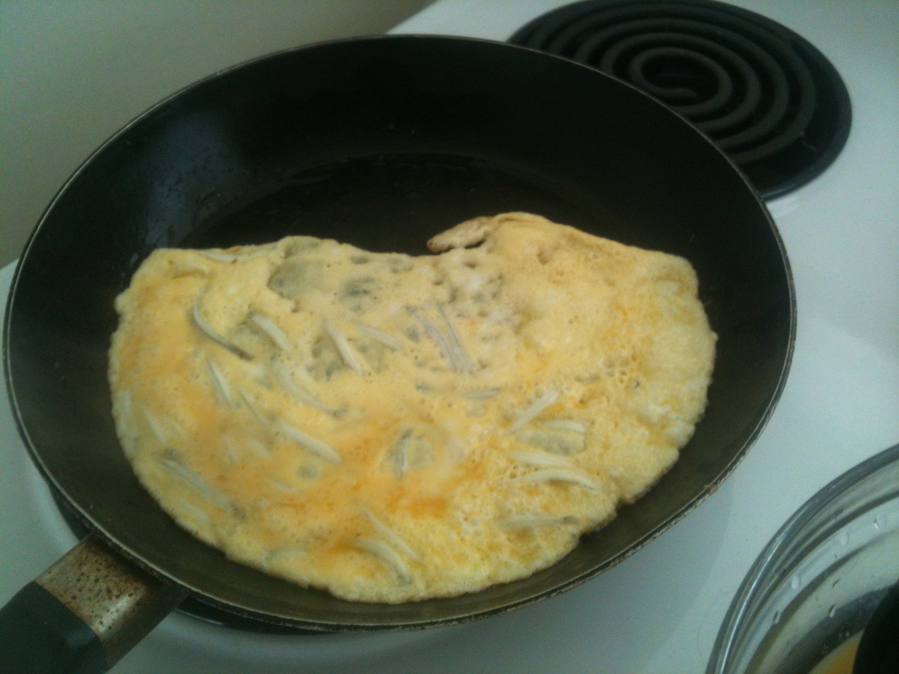 Add the whitebait and then whisk a little more.