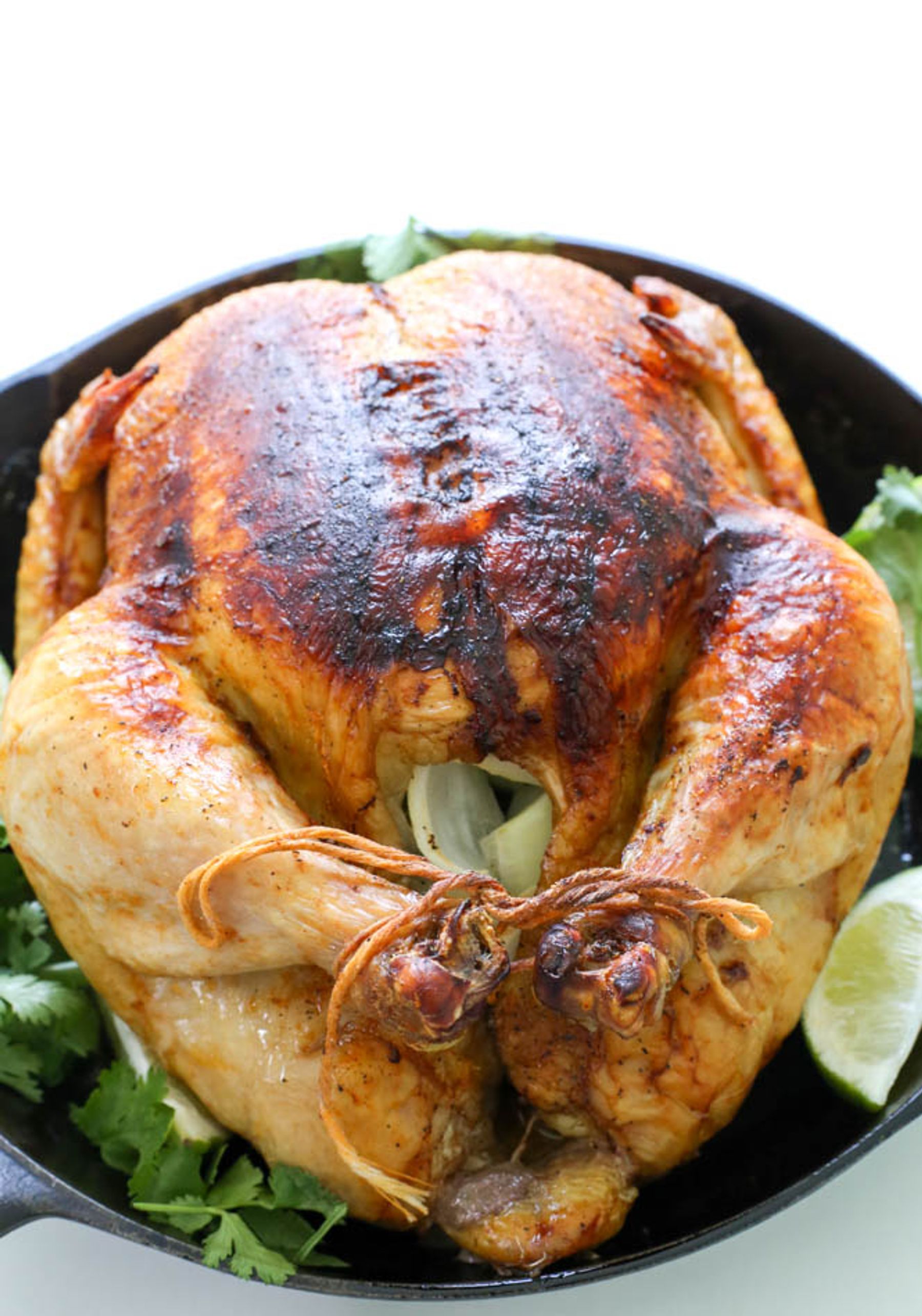Whole Roasted Mexican Chicken with Chipotle, Lime and Cilantro. Tender, juicy and loaded with flavor.