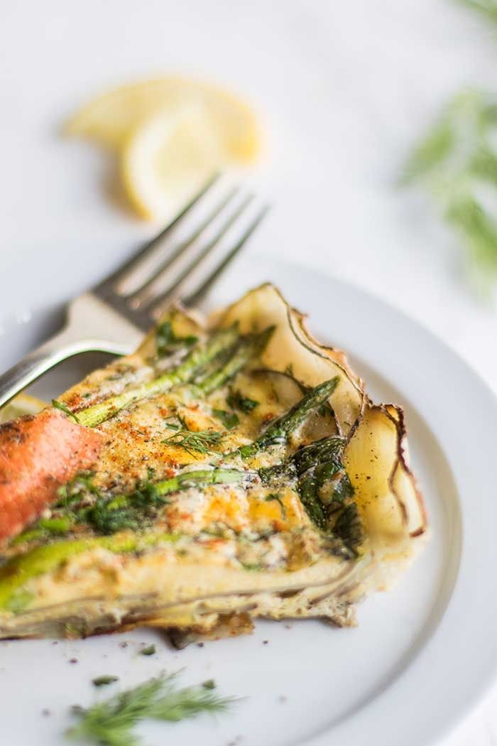 A beautiful Whole30 Frittata with a crispy potato crust, filled with smoked salmon, asparagus and herbs. This potato frittata recipe is the perfect base to start with to create any frittata you can dream up. The potatoes crisp around the edge of the pan, so this is similar to having your hash browns cooked right into your eggs!