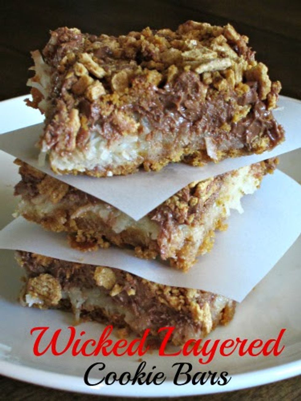 These cookie bars are definitely 'wicked' because they are so tempting and delicious! I'm a sucker for yummy desserts and with these being so tempting, I was caught finding myself enjoying them just a little too much! (Meaning one too many)! These will make about 18 bars depending on how you cut them, so if you cut them just a little bigger and say you only ate one, then you won't feel so guilty!