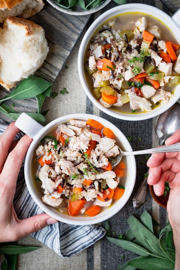 This easy Leftover Turkey Soup with Wild Rice is a simple, delicious dinner that takes advantage of your holiday extras! With carrots, celery, onion and herbs, each bite is full of healthy, flavorful ingredients. Don't have turkey on hand? Use chicken instead! Serve a cozy bowl of turkey soup with a basket of sweet potato biscuits, a loaf of crusty Dutch oven bread, or a skillet full of cornbread.