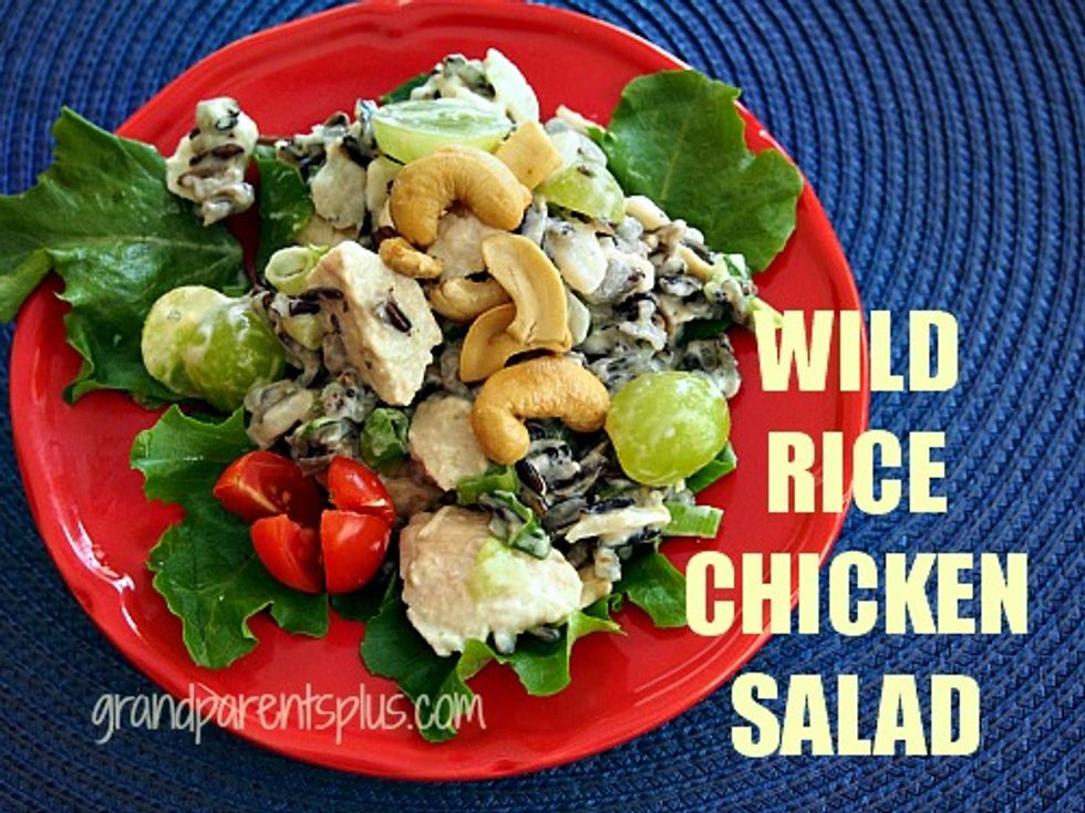 Delicious wild rice with water chestnuts, chicken, cashews and grapes! Truly a hearty and healthy salad. Gluten-free, too!