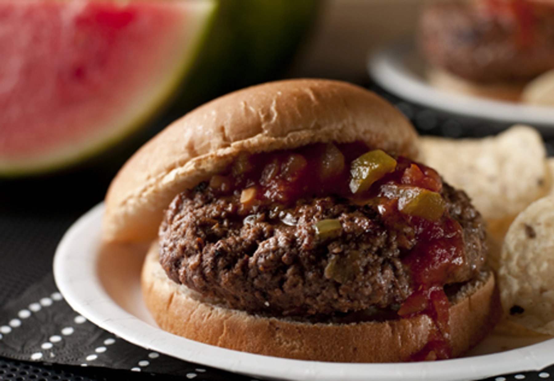 Fire up the grill and tempt family and guests with these robustly flavored burgers spiked with picante sauce.