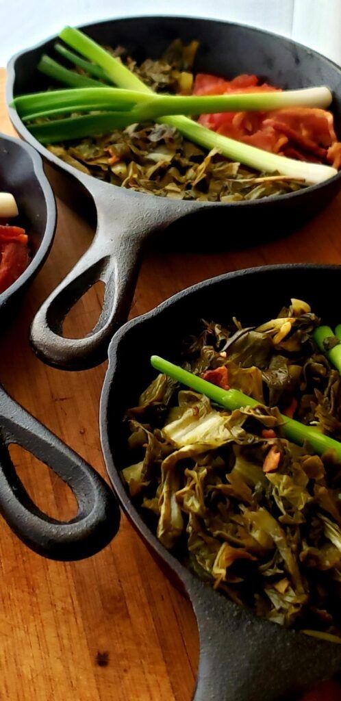 - Wilt the lettuce in 4 tablespoons of bacon fat.